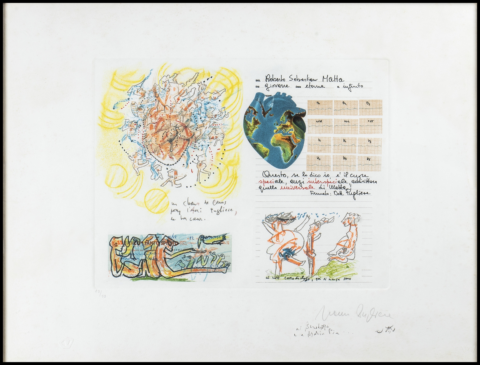 Firma, n° esemplare dedica in basso a destra: Sebastian Matta, 19/99, "A Benedetto e Maria Pia"
