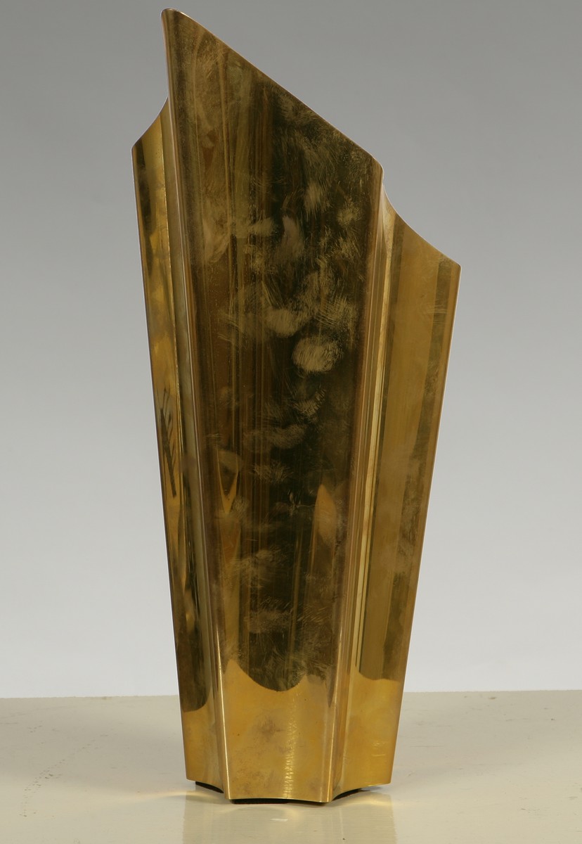 SABATTINI LINO (N. 1925). Vaso in metallo dorato. Vase in golden metal. Metallo dorato. Cm 20x37x14. 1970.