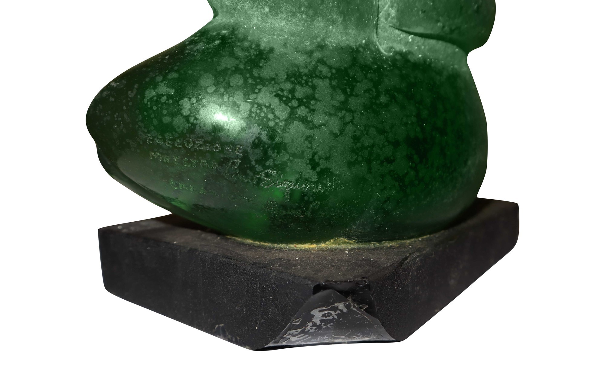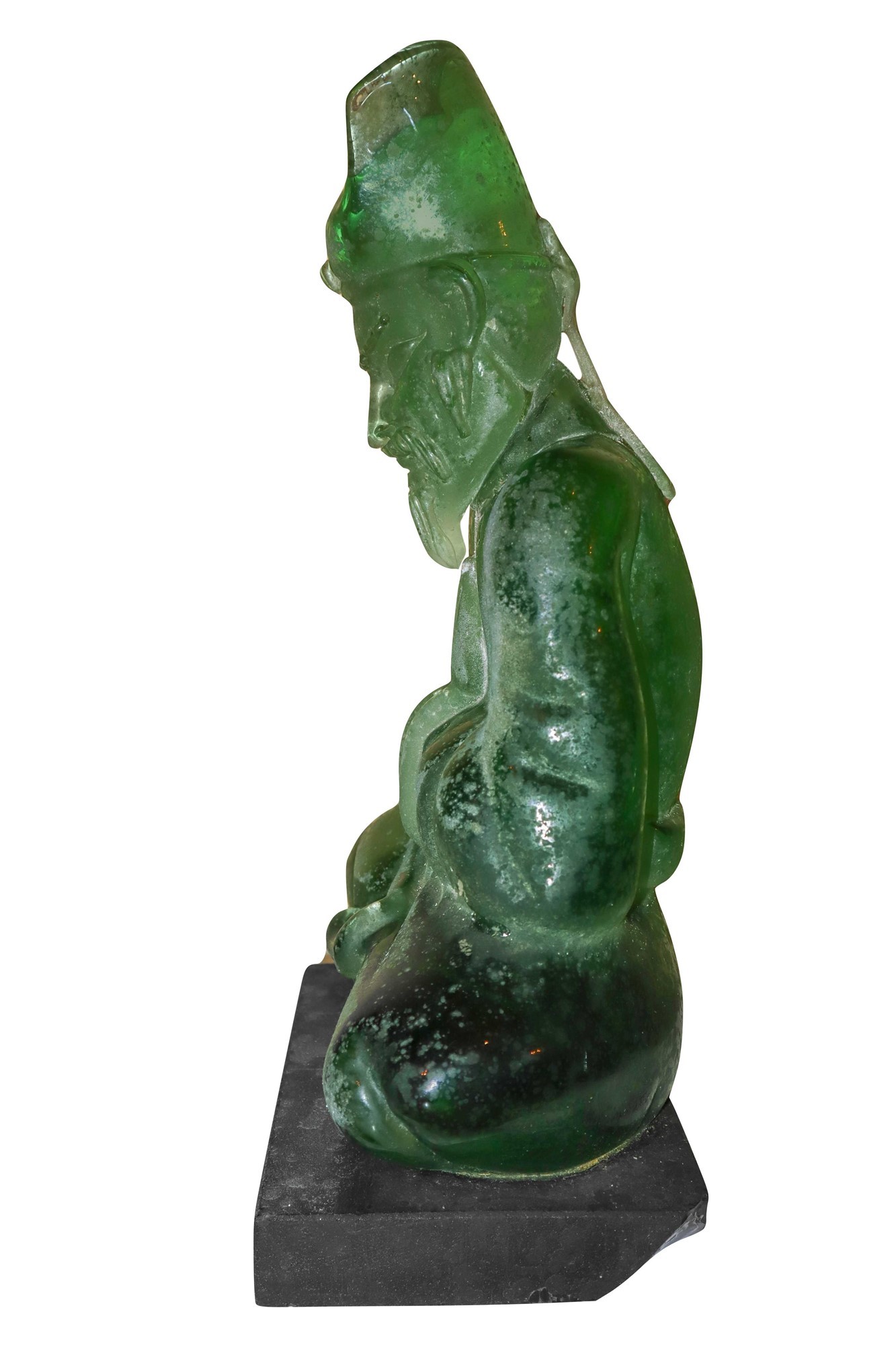 Pino Signoretto (Venezia 1944-2017) - Saggio cinese, 20th century h cm 36 di cui base cm 2,5 x cm 13 x cm 19 Scultura ritraente saggio orientale in vetro di murano firmato sul retro in basso a sinistra, base in vetro nero assoluto. Provenienza Famiglia Paternò Castello di Biscari.