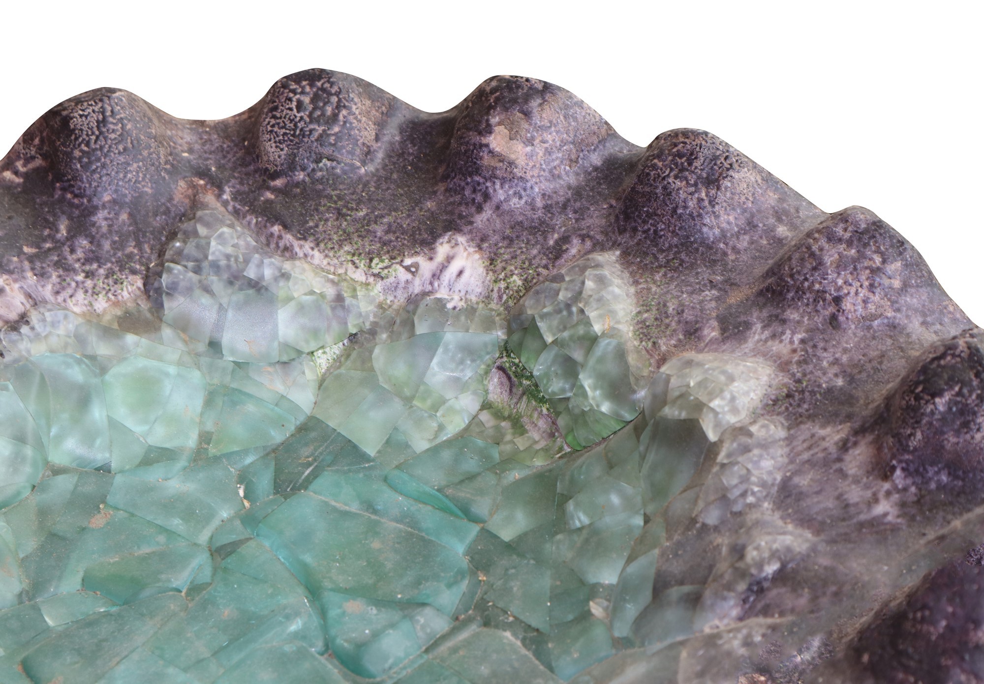 Centrotavola smerlato in vetro e resine