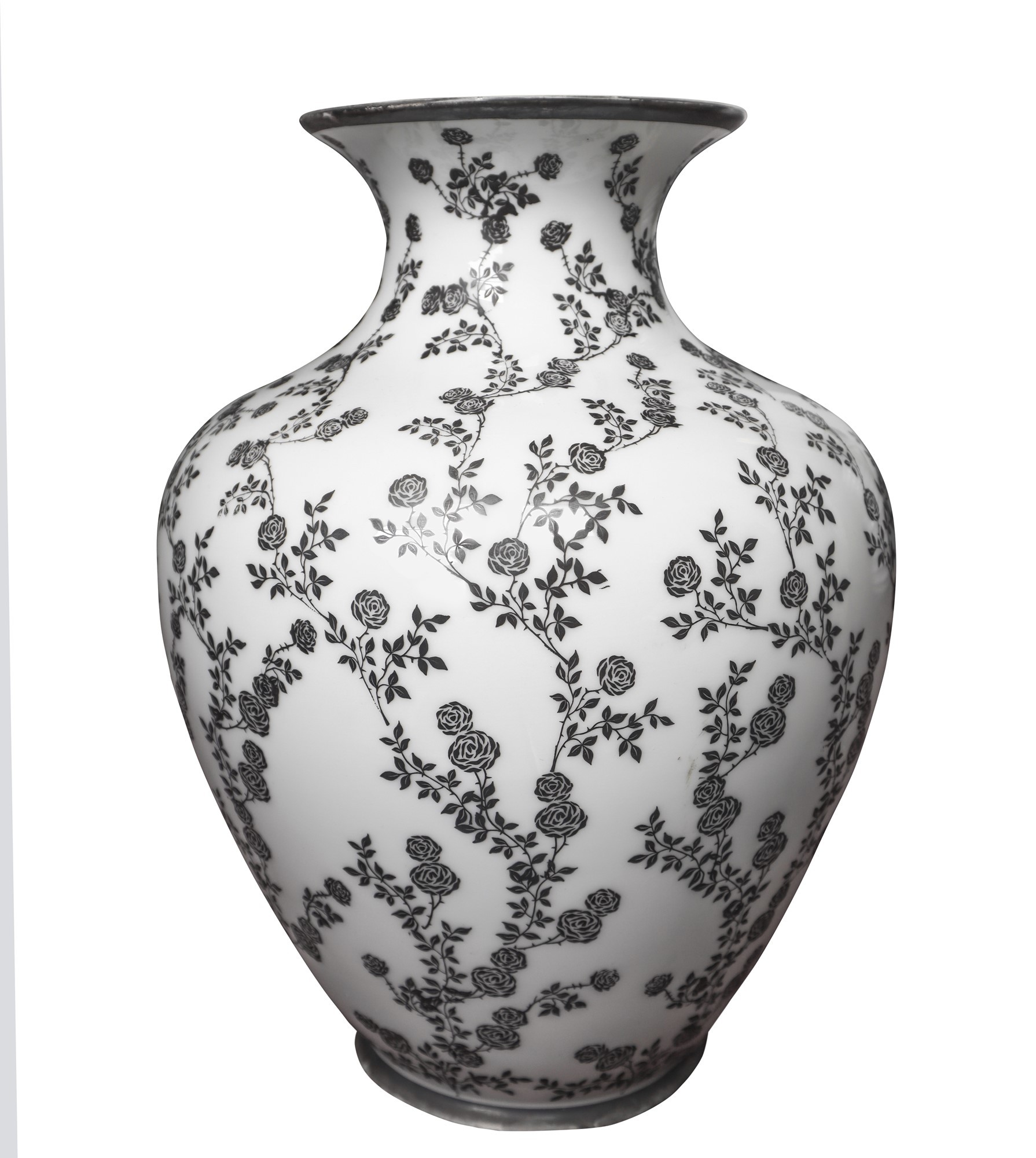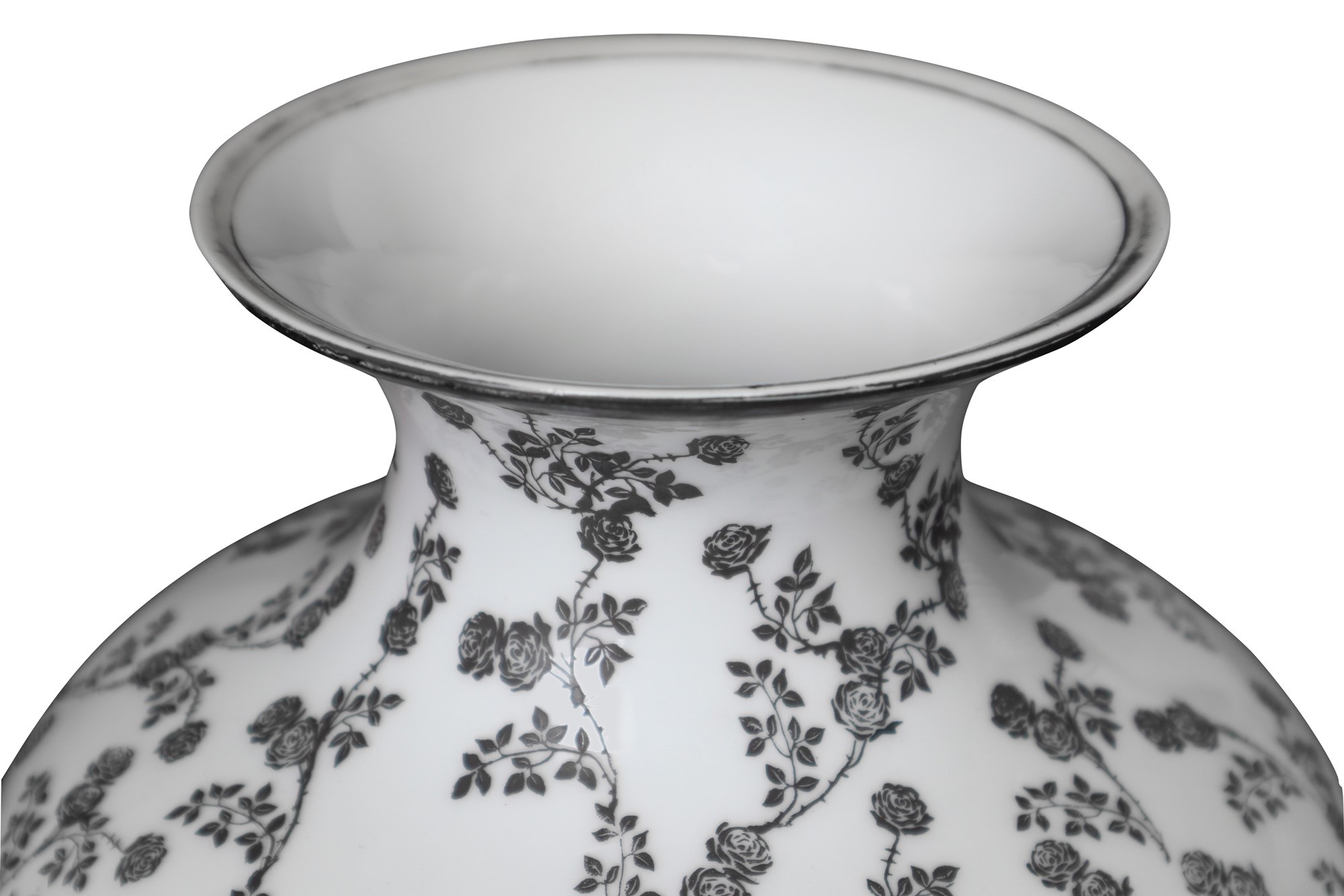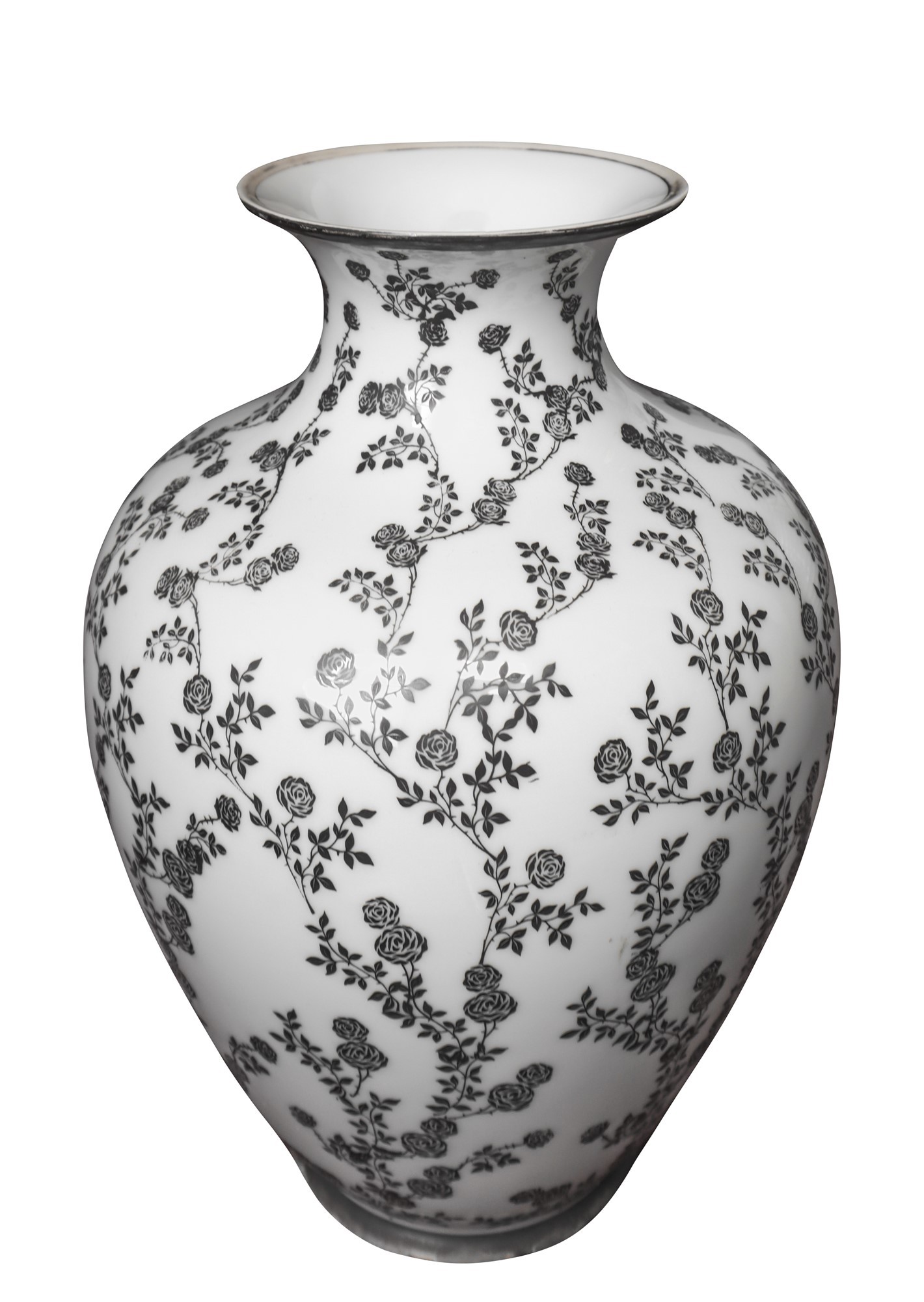 Vaso in porcellana bianca H cm 29 Con decori floreali in argento, marchio Thomas Bavaria