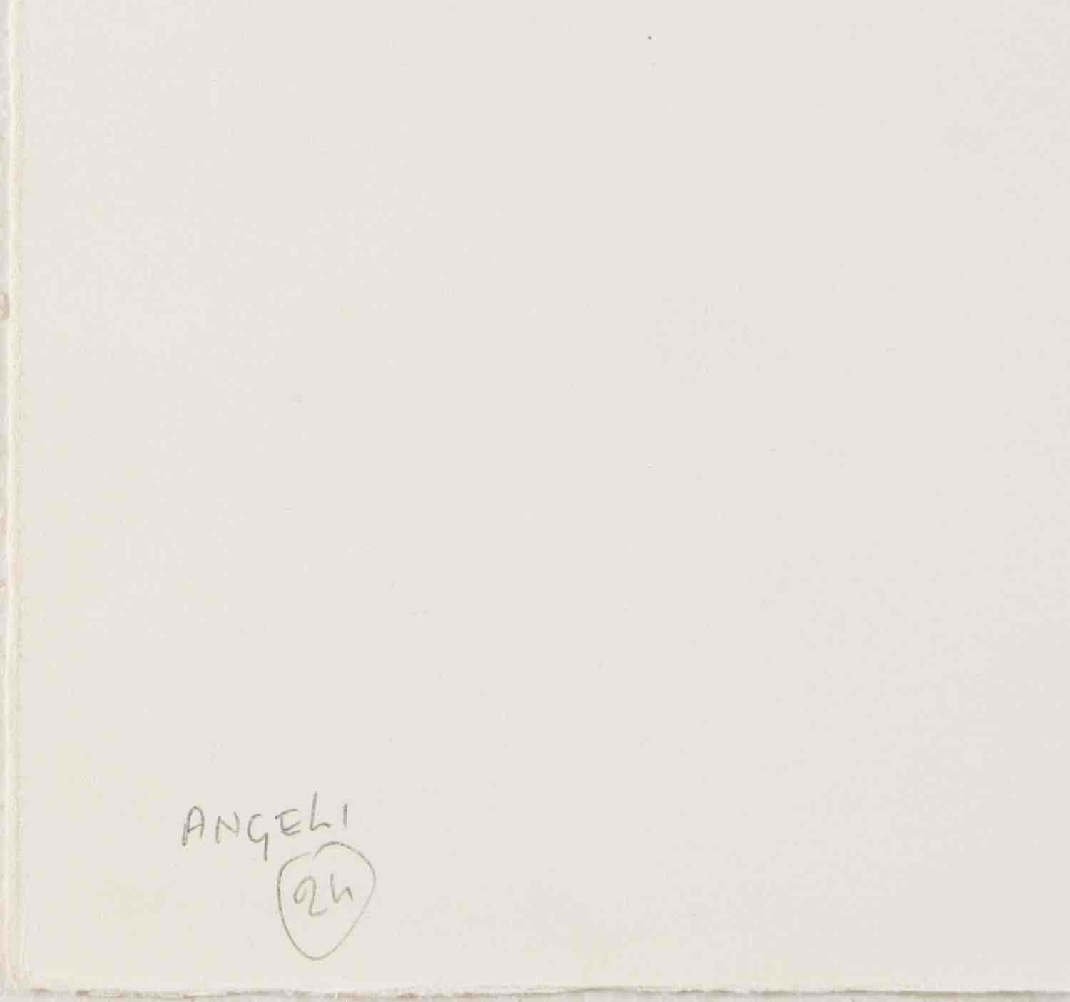 Serigrafia a colori su carta, firmata in basso a destra “Angeli”, numero di tiratura in basso a sinistra 16/99, Lastra H cm 31x36 – Foglio H cm 50.5x70