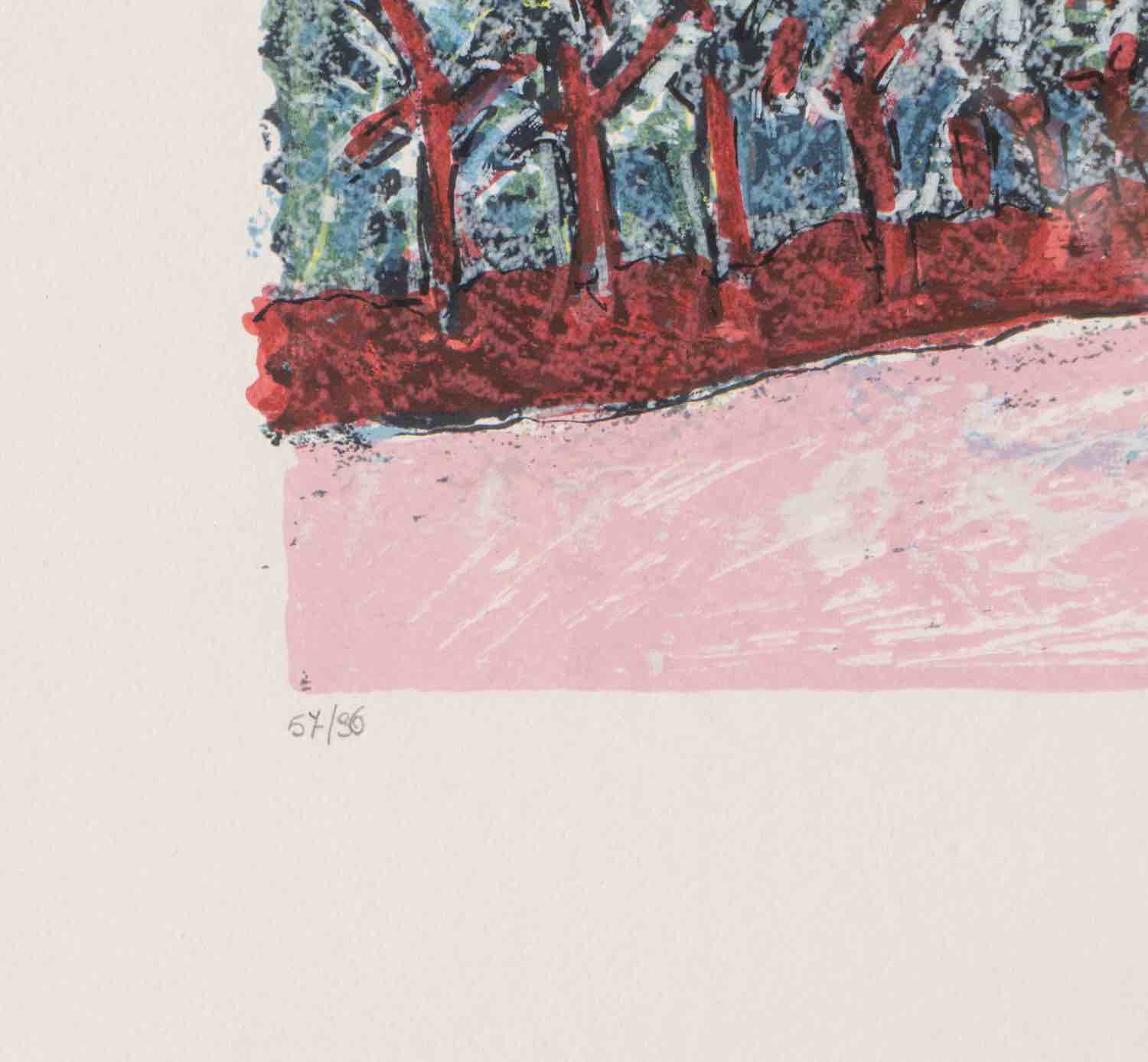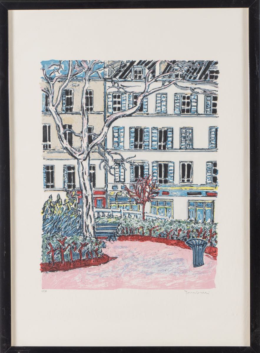 Litografia a colori su carta, firmata in basso a destra “Tamburi”, reca in basso a sinistra numero di tiratura 57/96, Lastra H cm 47x36 – Foglio H cm 68.5x49