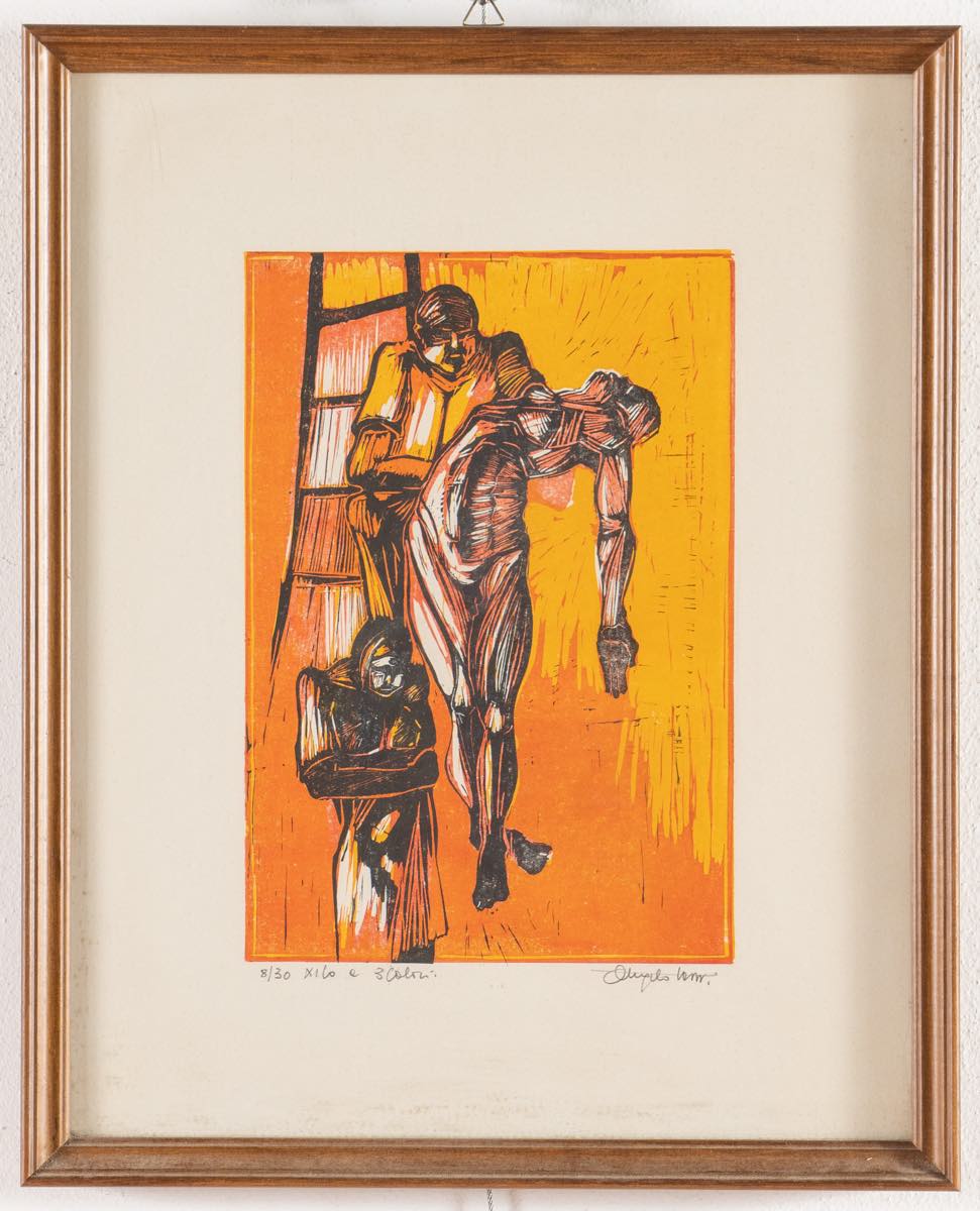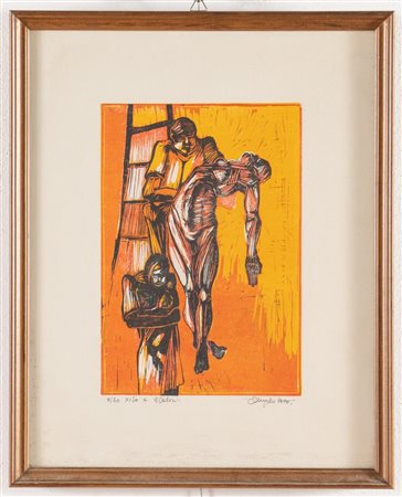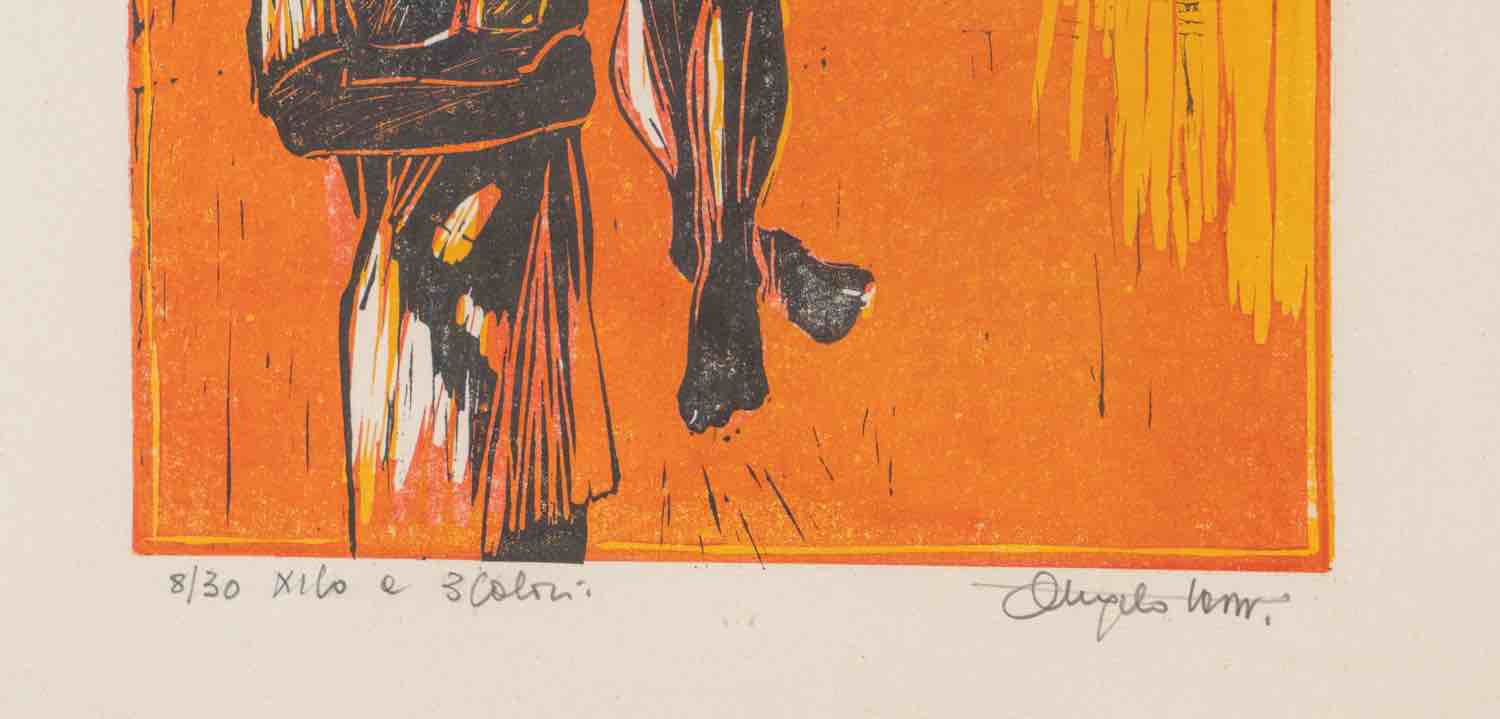 Xilografia a tre colori su carta, firmata in basso a destra, reca in basso a sinistra esemplare 8/30 e tecnica, Lastra H cm 27.5x19