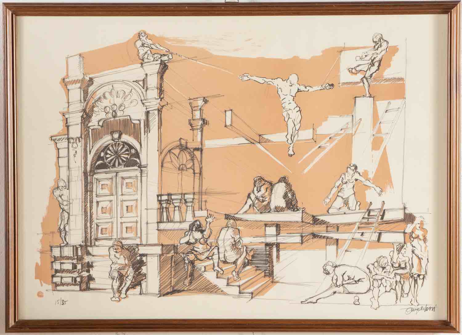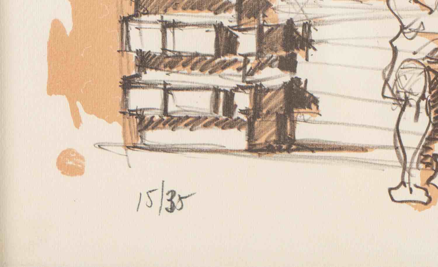 Litografia a colori su carta, firmata in basso a destra “Angelo Tassi”, numero di tiratura in basso a sinistra 15/35, Foglio H cm 50x70