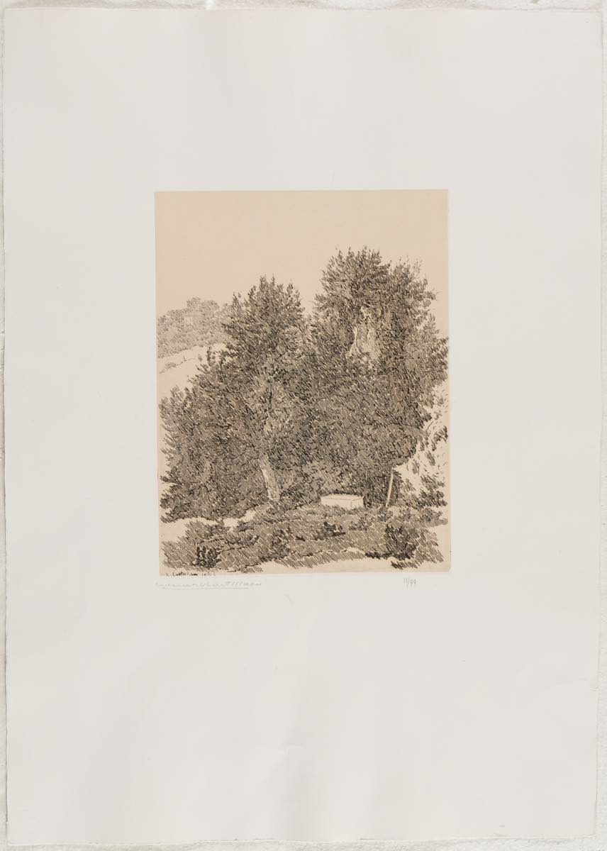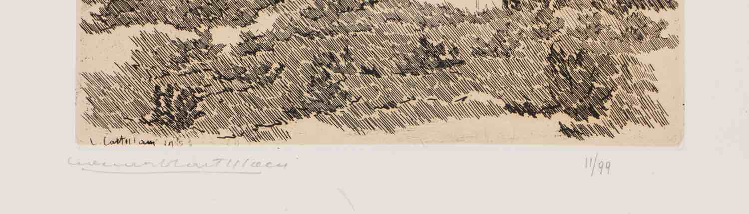 Litografia su carta, firmata e datata nella lastra “L. Castellani/1953”, firma in matita in basso a sinistra e numero di tiratura 11/99 in basso a destra, reca timbro a secco “Pergola Edizioni”, Lastra H cm 32x24.5 – Foglio H cm 70x50