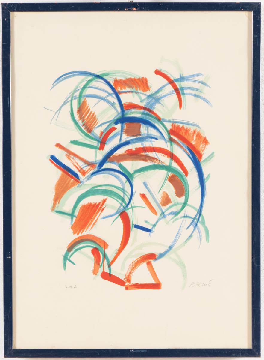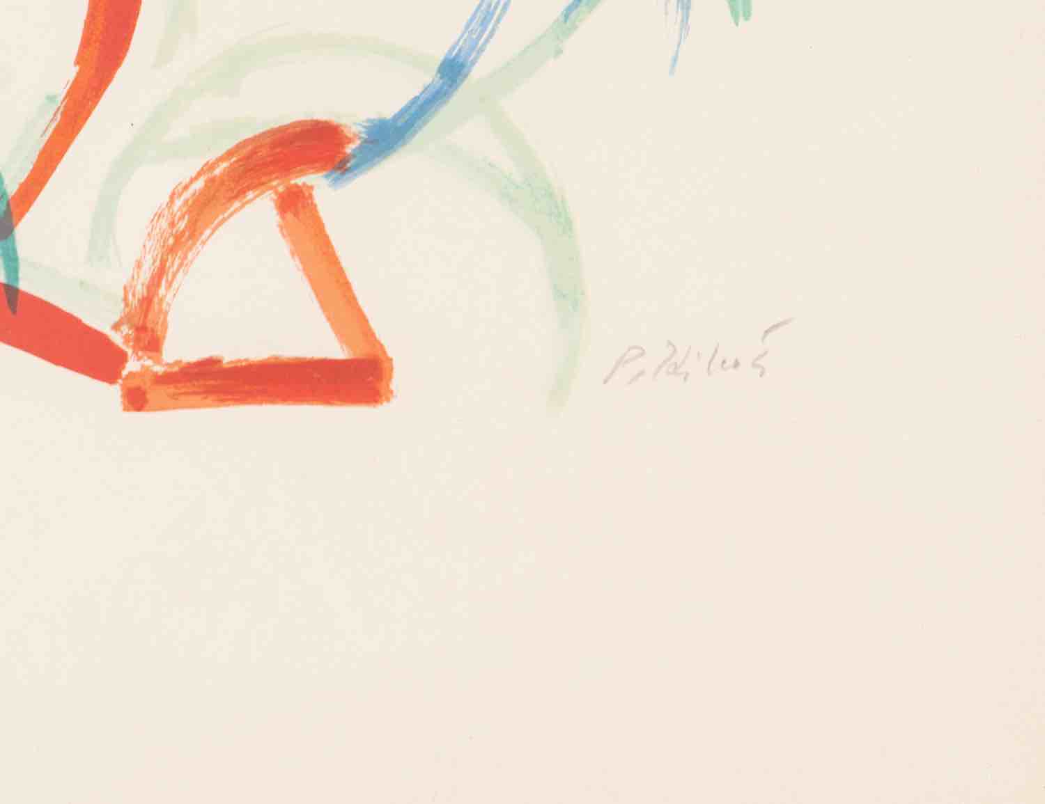 Litografia a colori su carta, firmata in basso a destra, esemplare in basso a sinistra “p.d.a”, Foglio H cm 69x49