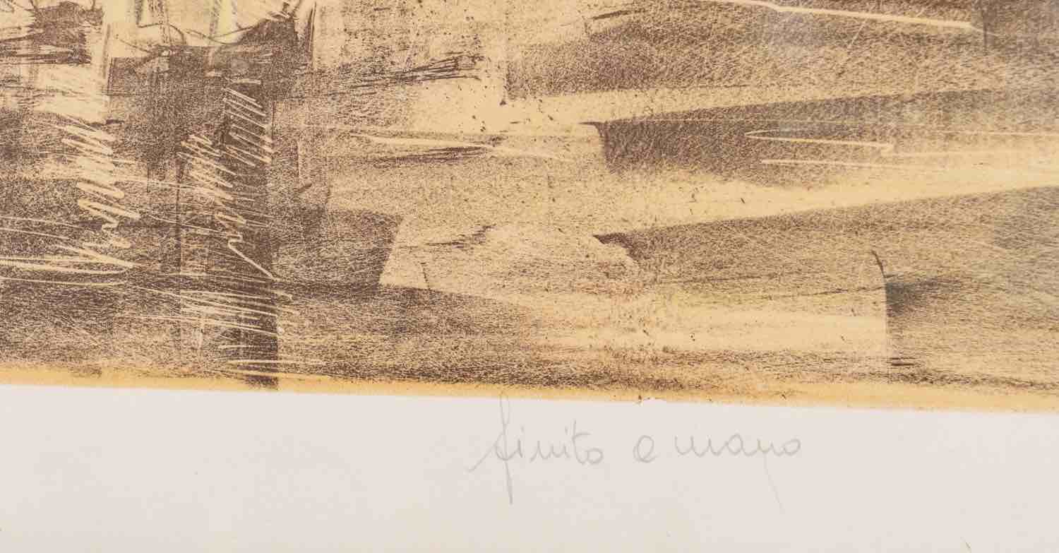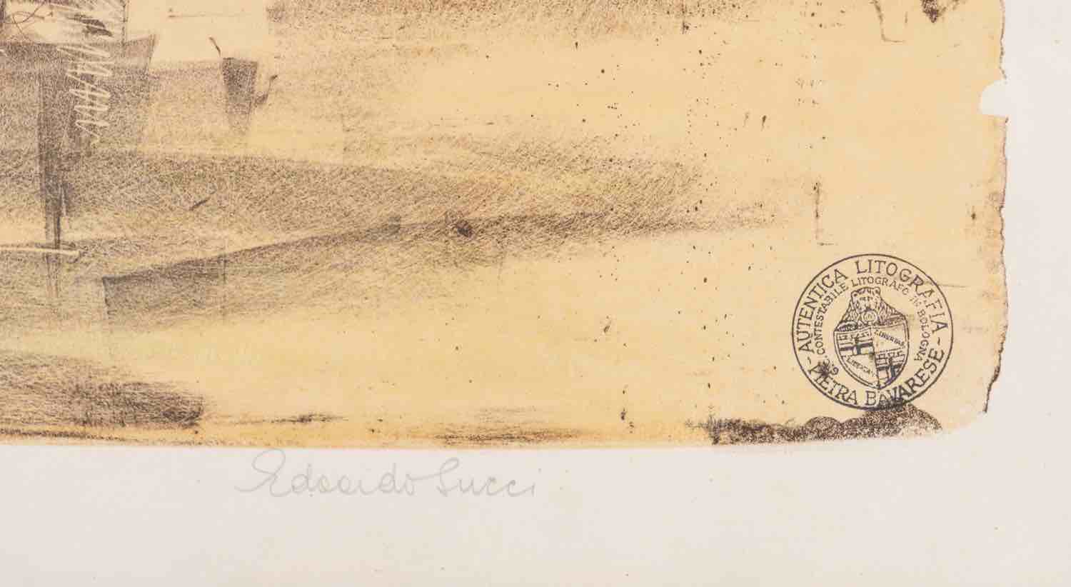 Litografia su carta firmata in basso a destra, reca titolo in basso a sinistra e iscrizione “finito a mano” al centro, nell’angolo in basso a destra della lastra è presente il timbro “Autentica Litografia – Pietra Bavarese”, Lastra H cm 53.5x76 (lievi usure)