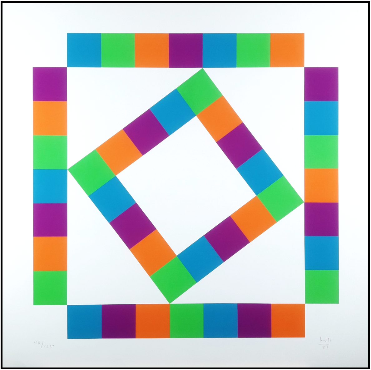 BILL MAX Winterthur 1908-Berlino 1994 "Senza titolo” serigrafia su cartone Fabriano cm 68x68 del 1935/82. Firmata a matita sul fronte in basso a destra, tiratura 46/125 a sinistra. Facente parte della cartella “Exacta- dal Costruttivismo all’arte sistemica 1918-1985”.