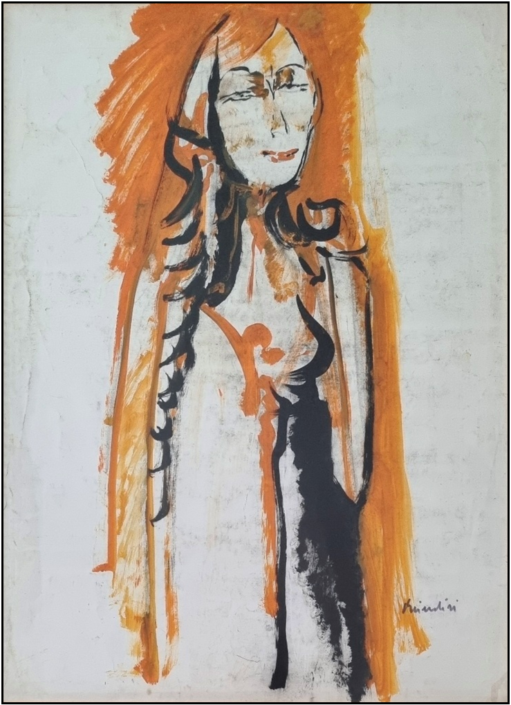 BRINDISI REMO Roma 1918-Lido di Spina 1996 “Figura” tecnica mista su carta cm 56x76 degli anni ‘70. Firmata sul fronte in basso a destra. Archivio su foto a cura della Galleria Pace.