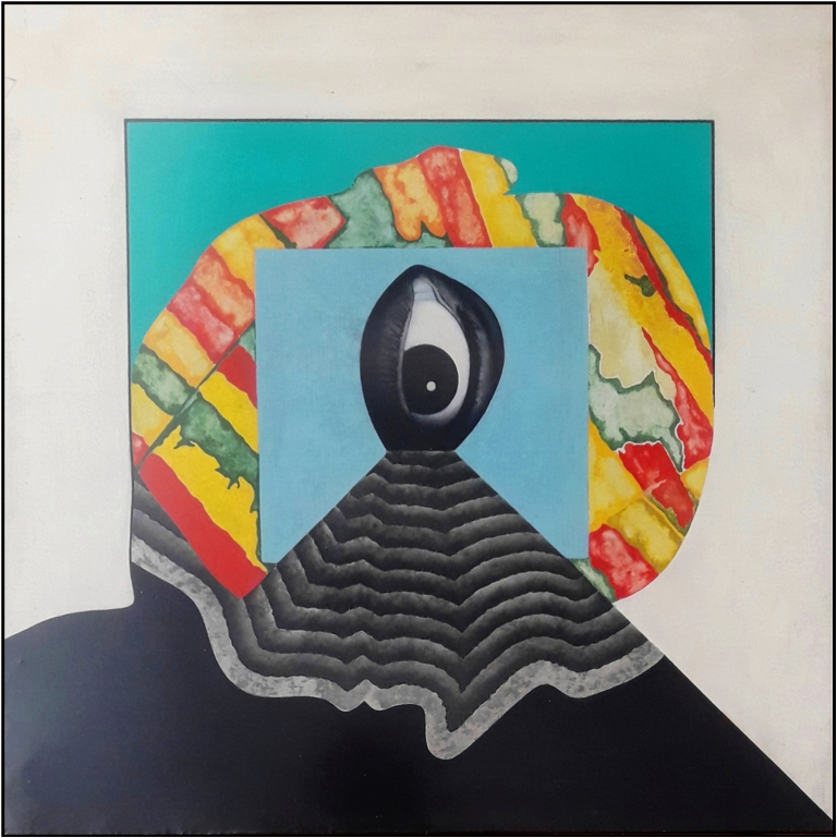 CAGNONE ANGELO Carcare 1941 “L’uomo interno esterno” tecnica mista su tela cm 40x40 del 1971. Sul retro titolo, firma e data. Autentica su foto.