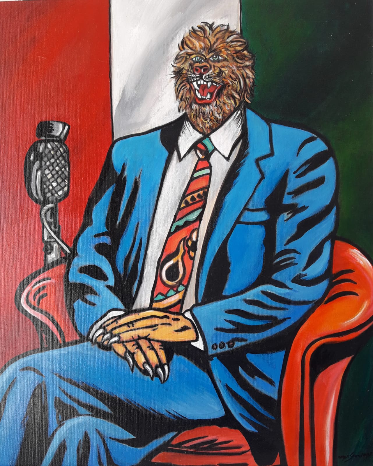MAX HAMLET SAUVAGE Gallipoli 1950 "Uomo di potere” acrilico su tela cm 50x60 del 2015. Firmato sul fronte in basso a destra. Sul retro titolo, data, firma e anno. Autentica su foto a cura dell’artista.