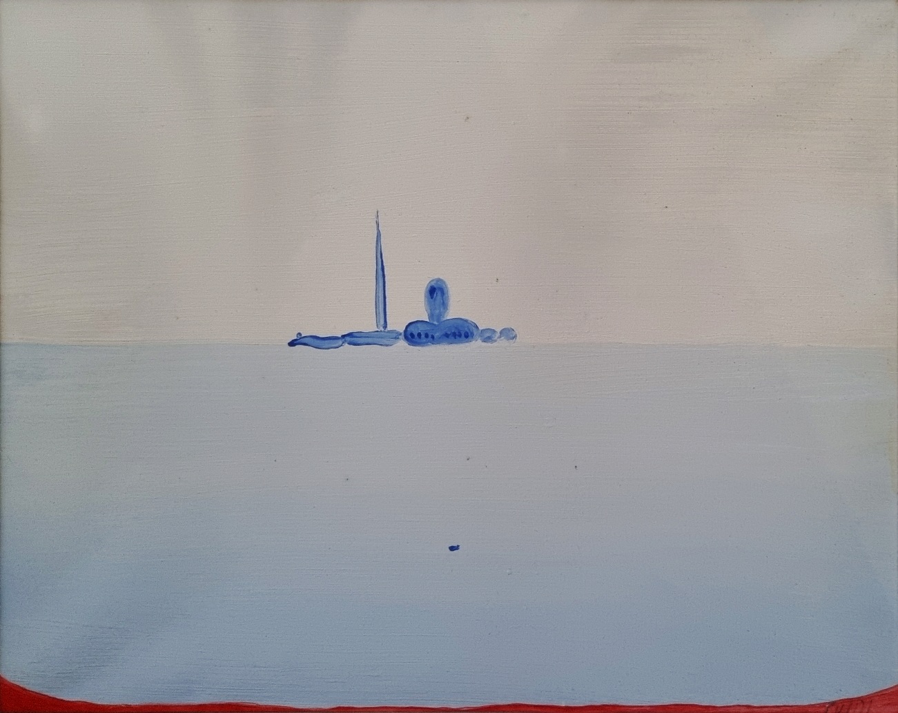 GUIDI VIRGILIO Roma 1891-Venezia 1984 "San Giorgio" olio su tela cm 50x40 del 1982. Firmato sul fronte in basso a destra. Sul retro titolo, firma e data. Autentica su foto a cura del maestro in data 02/06/1982.