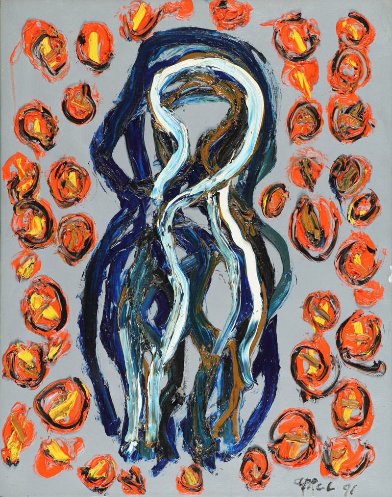 APPEL KAREL (1921-) Abbraccio 1991 olio su tela cm 80x65 firmato in basso a...