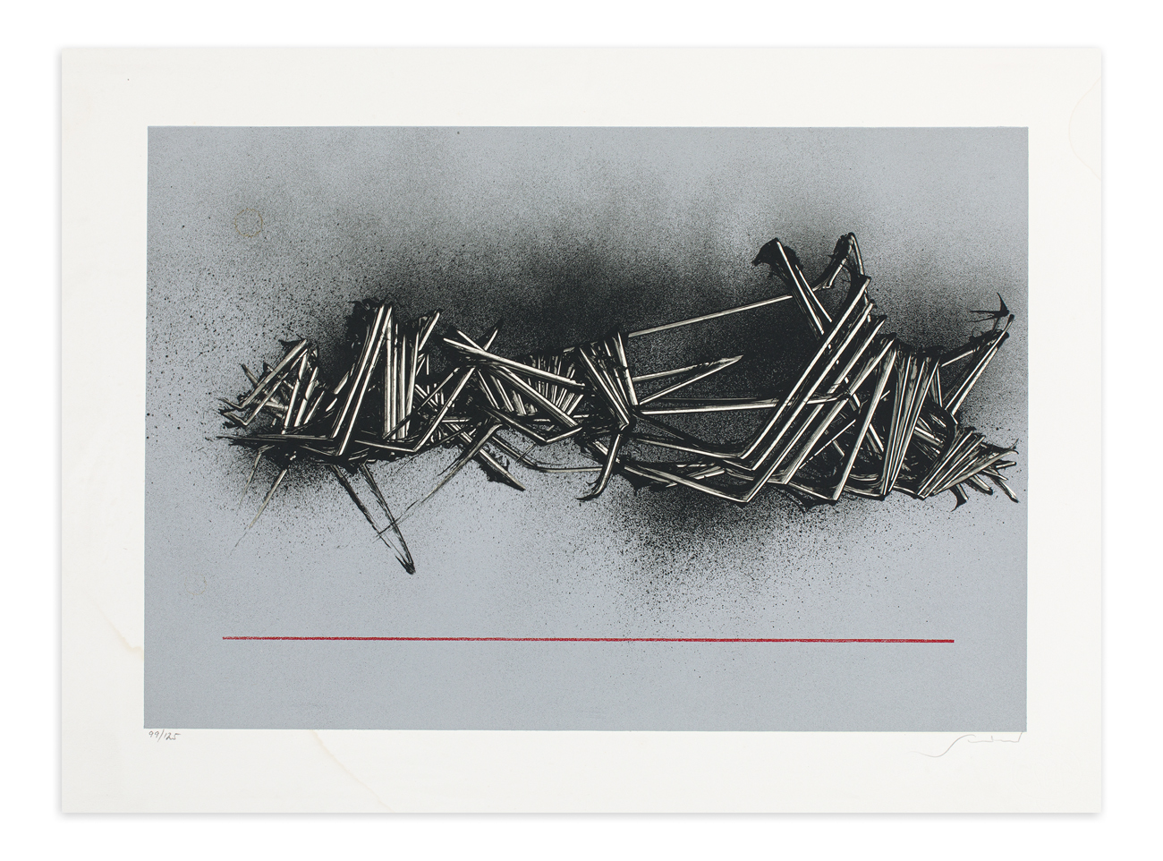 Firma e numerazione (Esemplare 99/125) a matita al fronte
