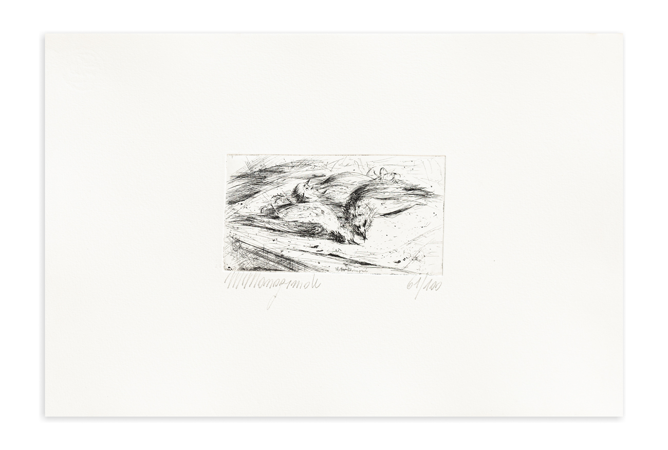 Firma e numerazione (Esemplare 61/100) a matita al fronte