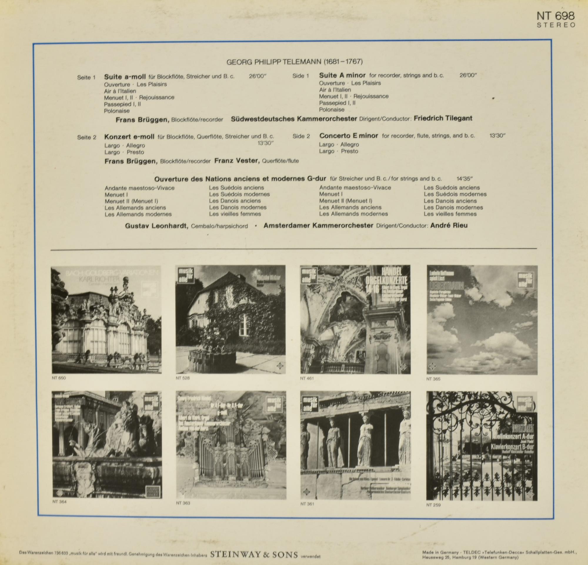 Georg Philipp Telemann BLOCKFLOTENWERKE LP 33 giri, Telefunken