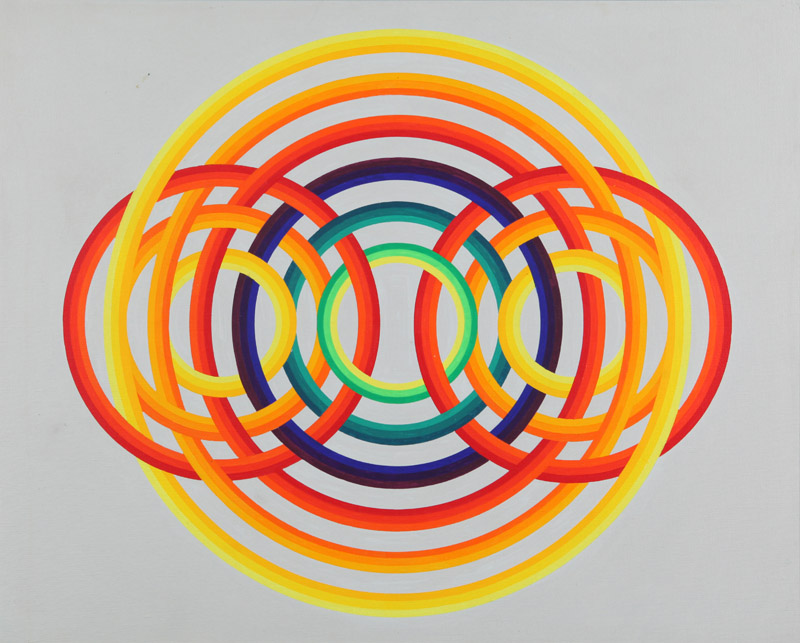 JOEL STEIN (1926-2012) Cercles chromatique sour fond gris 1973 acrilico su...