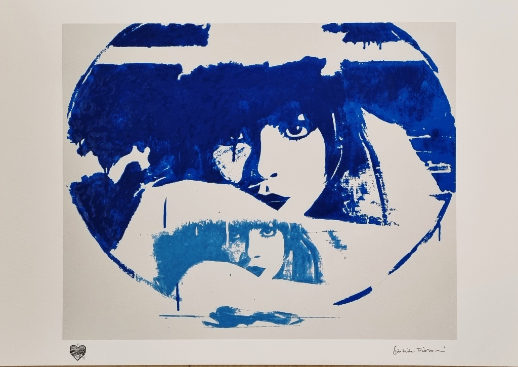 FIORONI GIOSETTA Roma 1932 "Doppio liberty light blu" Serigrafia polimaterica e carborundum a 12 colori, su carta cm 100x70. Firmata sul fronte in basso a destra, tiratura 13/99 a sinistra. Certificato di autenticità a cura dell'Archivio Parise Fioroni.