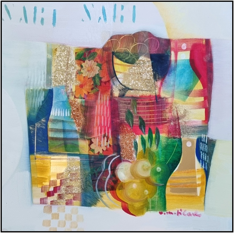 DI CARLO MARIO VITTORIO San Marco in Lamis (FG) 1939 - Milano 2015 "Sari Sari" Olio su tela cm 60x60. Firmato sul fronte in basso a destra. Sul retro firmato.
