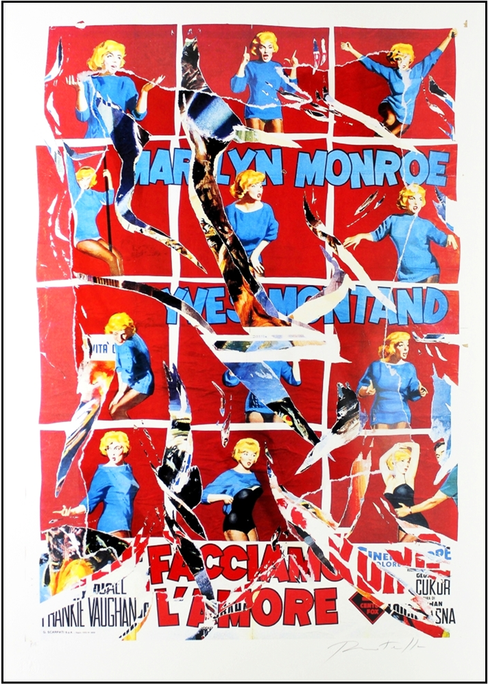 ROTELLA MIMMO Catanzaro 1918 - Milano 2006 "Facciamo l'amore" Multiplo, decollage, strappi di manifesto su supporto serigrafico su cartoncino cm 70x100 del 2000/2009. Firmato sul fronte in basso a destra, tiratura P.A. a sinistra. Opera pubblicata sul catalogo "Mimmo Rotella multiplo decollage", Silvana editore, a pag. 62.