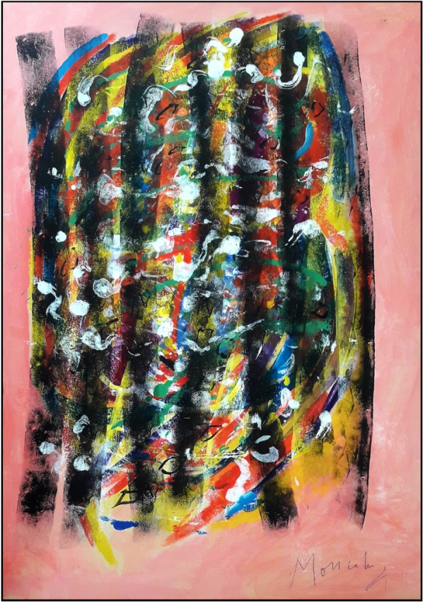 MONCADA IGNAZIO Palermo 1932 - Milano 2012 "Senza titolo" Tecnica mista su cartoncino applicato su tela cm 70x100. Firmata sul fronte in basso a destra. Archiviazione su richiesta.