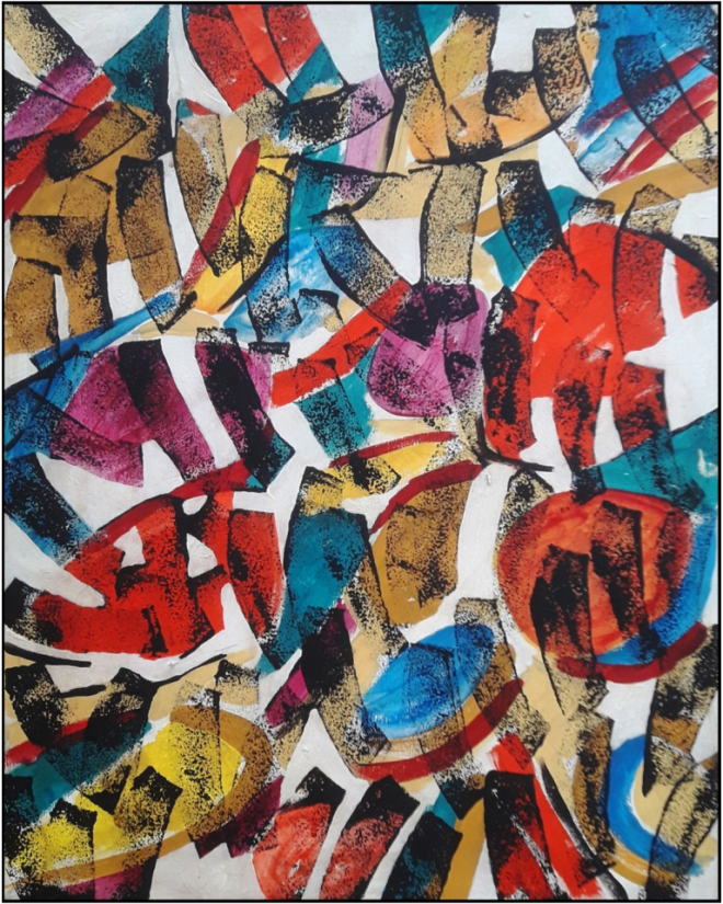 MONCADA IGNAZIO Palermo 1932 - Milano 2012 "Correnti d'aria" Tecnica mista su tela cm 40x50 del 1993. Sul retro firma, titolo e data. Archiviazione su richiesta.