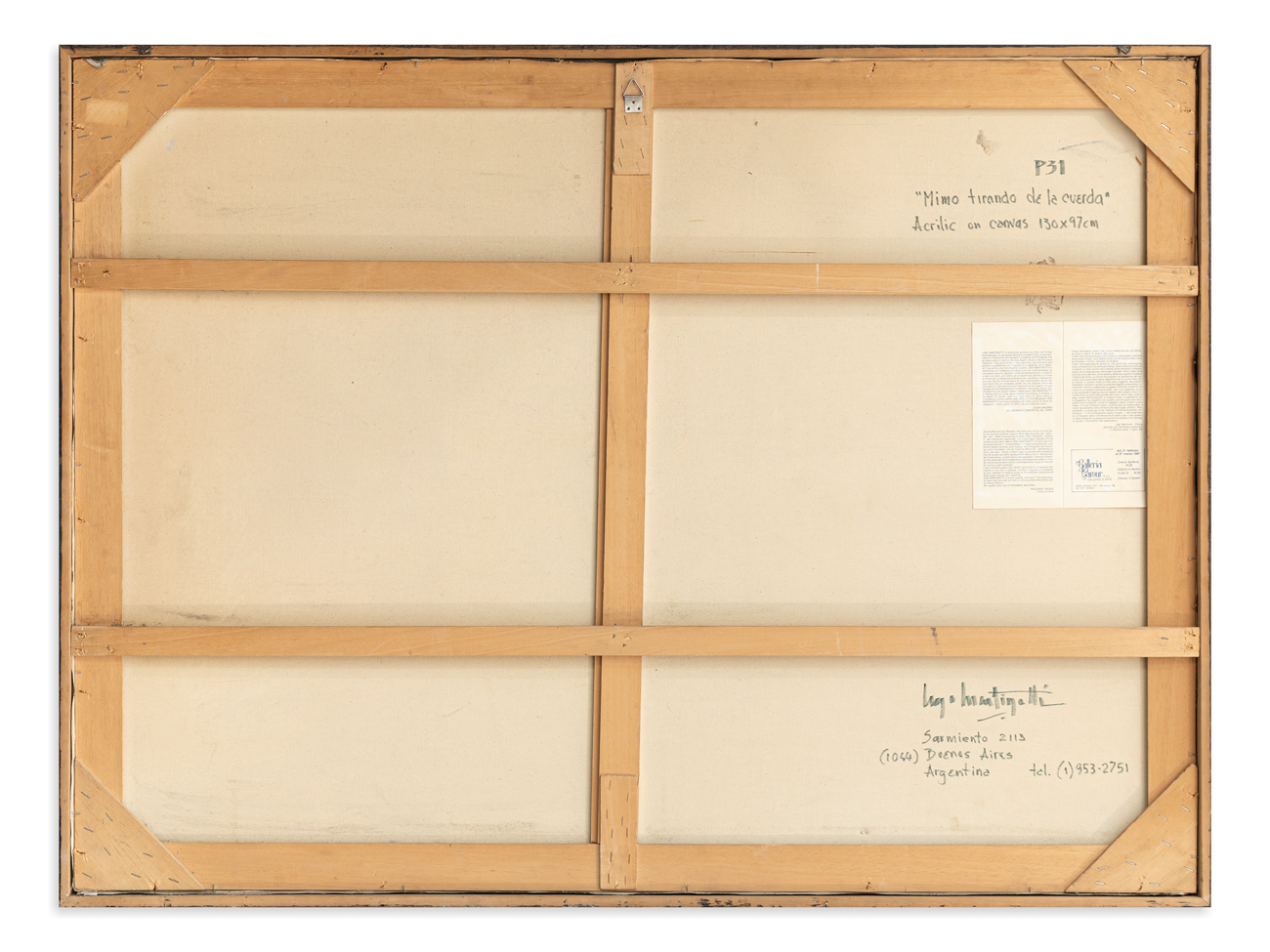 Firma, titolo, tecnica, misure e località (Buenos Aires) al retro
