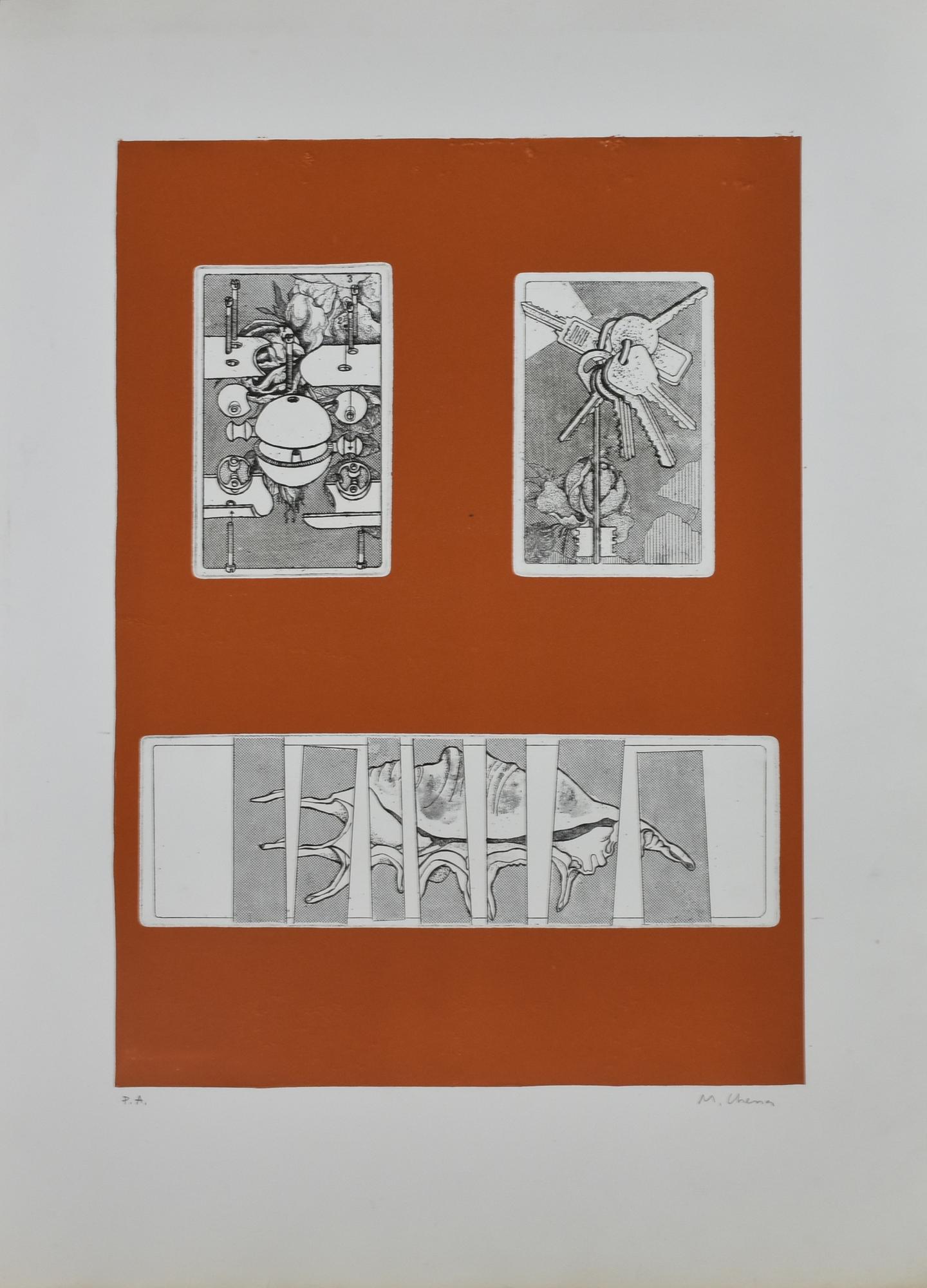 Mauro Chessa CARTE DA GIOCO incisione su carta, battuta cm 50x35, su foglio...