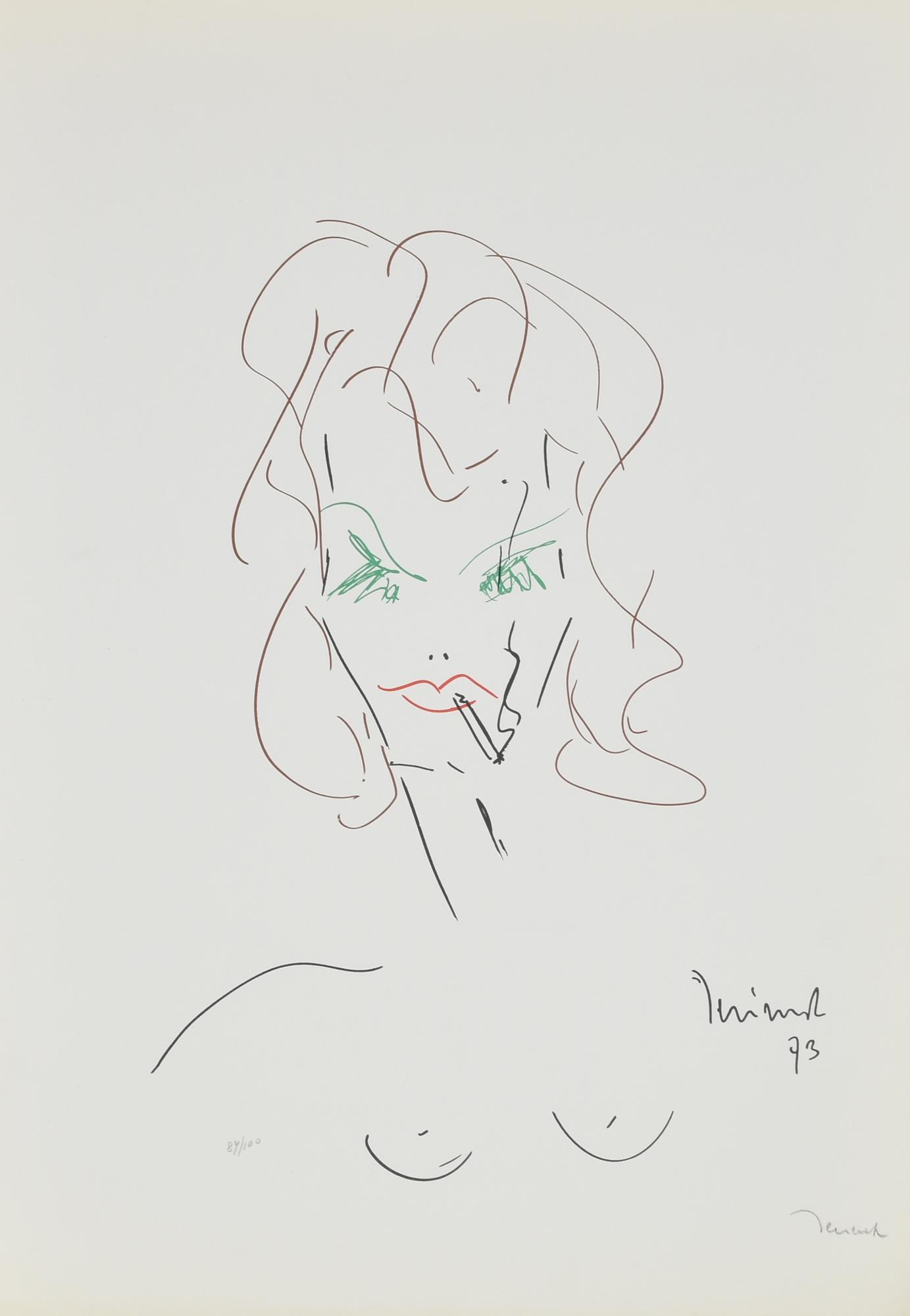 Harry Jelinek LA FUMATRICE litografia su carta, cm 68x48; es. 87/100 firma...