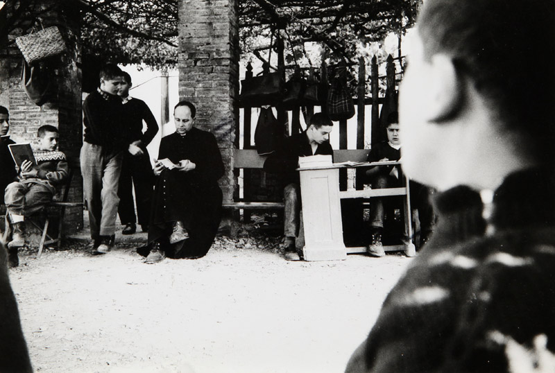 TOSCANI OLIVIERO (-) Don Milani 1964 stampa ai sali d'argento – vintage 19,6x28,8 cm timbro sul retro Oliviero Toscani Don Milani 1964 7,49x11,03 inch vintage silver print stamp Oliviero Toscani on the reverse