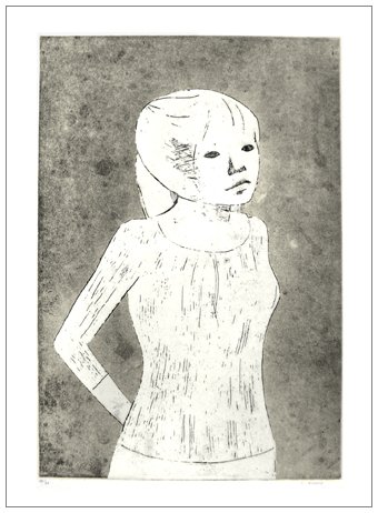 XAVIER BUENO Vera de Bidasoa (Spagna) 1915 – Fiesole 1979 Senza titolo Acquaforte e acquatinta es.89/90. Firma in b. a d. + timbro a secco “Shop Art” in b. a s. + t imbro a secco “Il Tritone” in b. a d. (69,7 x 50 foglio – 49,4 x 34,5 inc.)