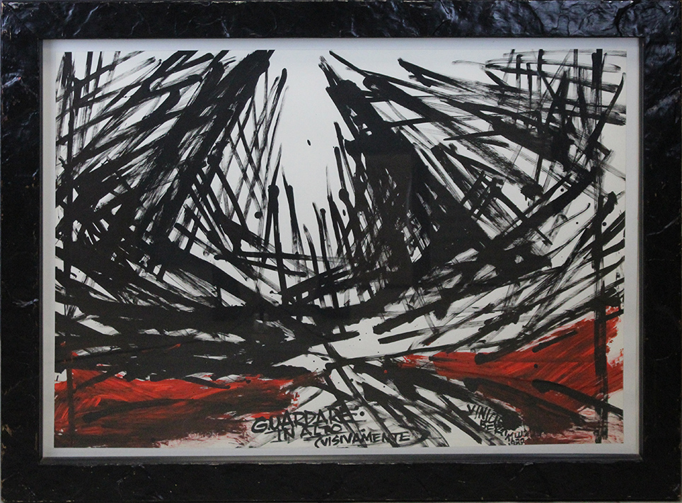 VINICIO BERTI, "Guardare in alto", 1988, Acrilico su cartoncino, Dim. 70x100, Al fronte: in basso al centro titolo, in basso a destra data e firma, Opera con cornice