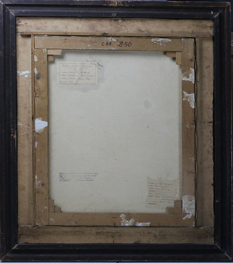 GIUSEPPE MIGNECO, 1965, Olio su tela, Dim. 60x50, Al fronte: datato e firmato in basso a sinistra, Al verso: etichetta Galleria d'arte Margutta, Opera con cornice