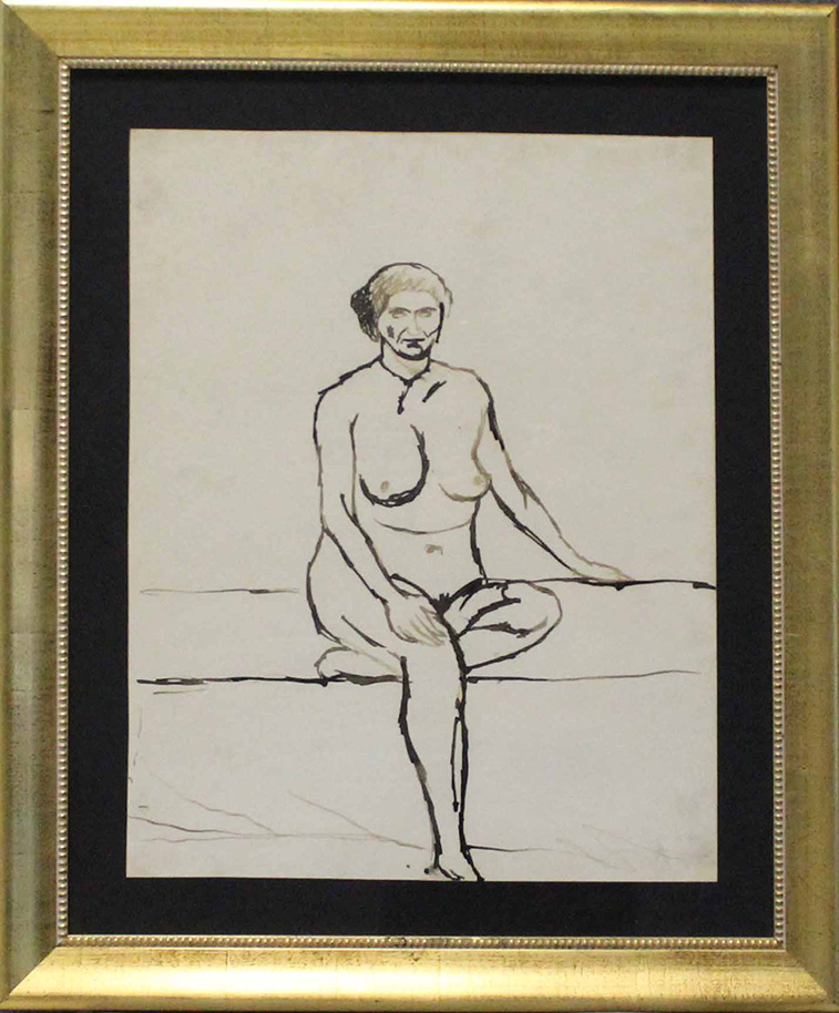 OTTONE ROSAI, "Nudo di donna seduto", 1947, Inchiostro su carta, Dim. 51x40, Opera archiviata presso Archivio Giovanni Faccenda, Opera con cornice
