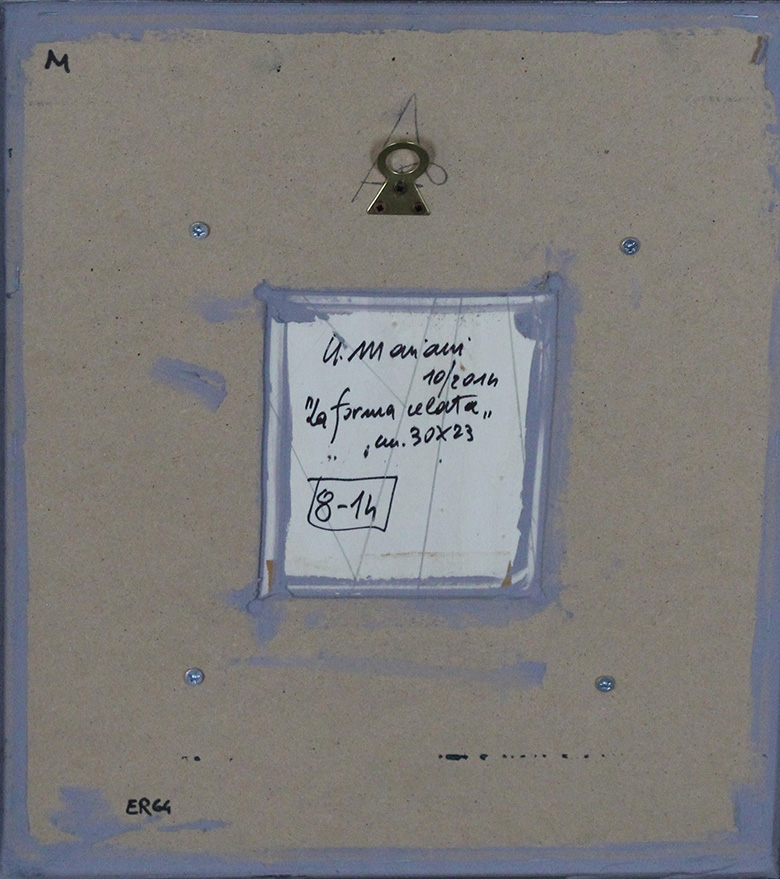 UMBERTO MARIANI, "La forma celata", 2014, Dim. 30x23, Al verso: firma, data, misura e titolo, Opera accompagnata da autentica su foto dell'artista, Opera con cornice