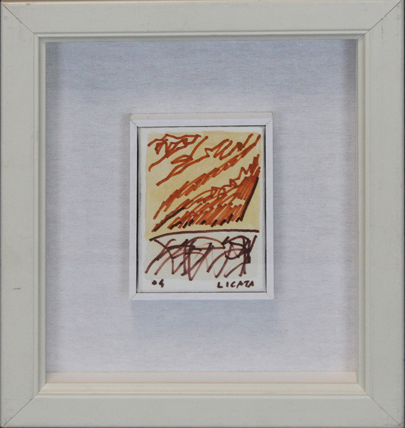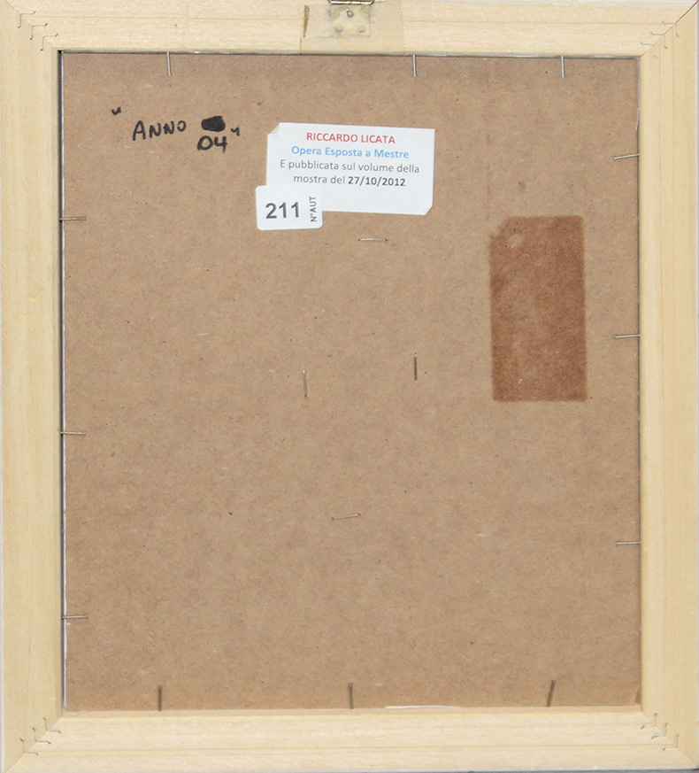RICCARDO LICATA, Senza titolo, 2004, Tecnica mista su carta intelata, Dim. 13x9, Al fronte: datato in basso a sinistra, firmato in basso a destra, Opera accompagnata da autentica su foto dll'artista, Opera pubblicata sul volume della mostra del 27/10/2012 (Mostra di Mestre), Opera con cornice