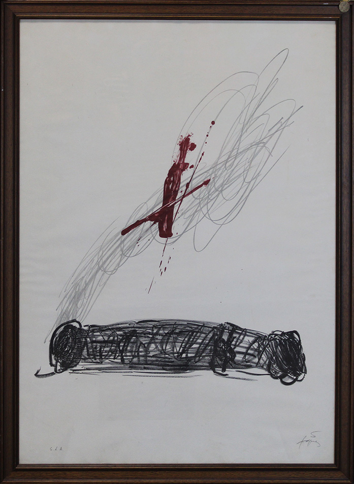 ANTONI TAPIES, Litografia su cartoncino, Dim. 77x57, Al fronte: tiratura P:A in basso a sinistra, firmato in basso a destra, Opera con cornice