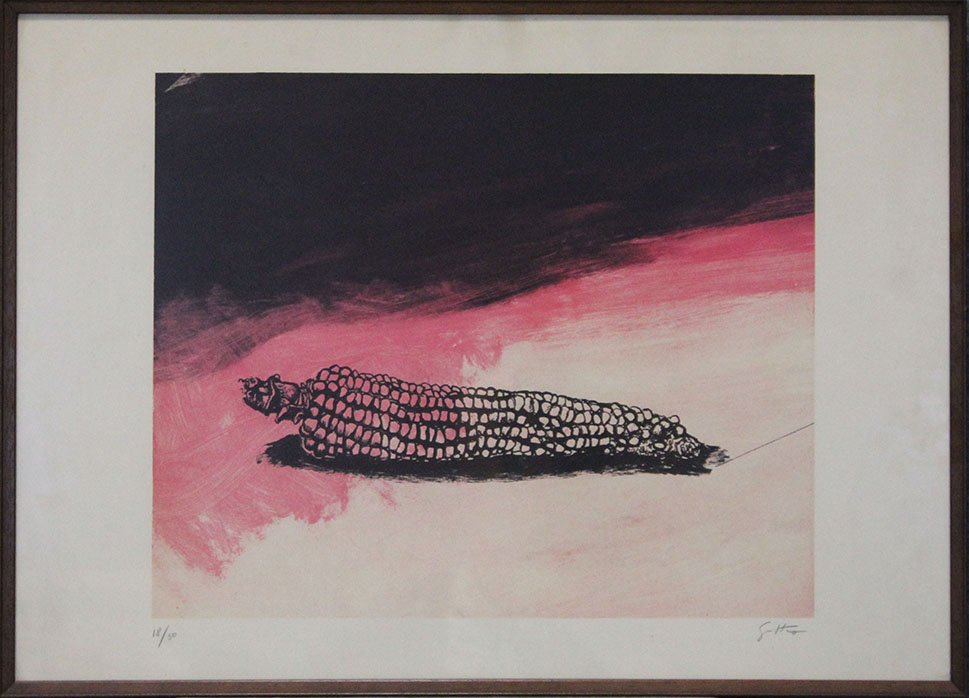 RENATO GUTTUSO, "Una pannocchia", Anni '60, Litografia su cartonicno, Dim. 60x50, Al fronte: esemplare 18/50 in basso a sinistra, firma in basso a destra, Opera con cornice