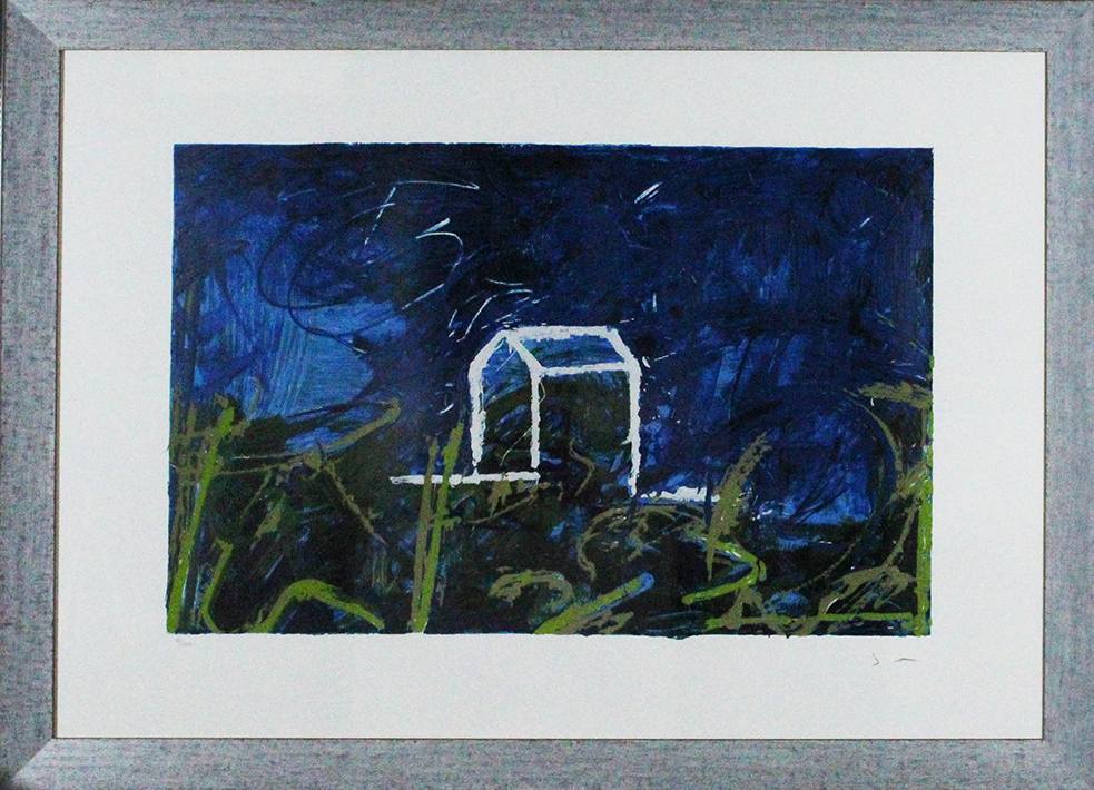 MARIO SCHIFANO, "Veduta notturna", Serigrafia materica a smalto su carta, Dim. 70x100, Al fronte: tiratura 107/199 in basso a sinistra, firmato in basso a destra, Opera con cornice
