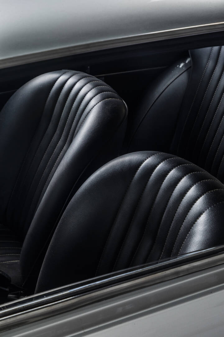 Colore esterno argento metallizzato, interni in vinile nero.
