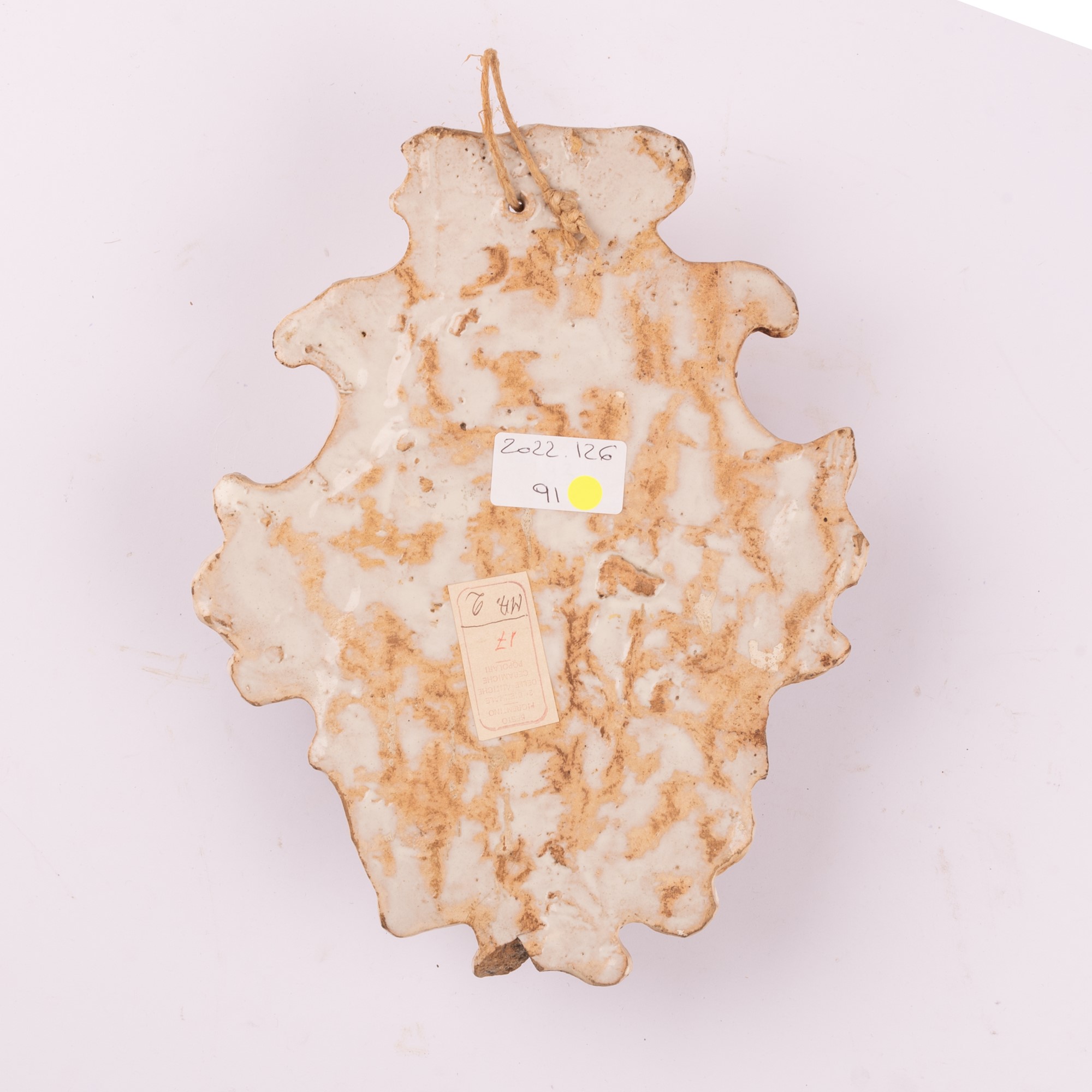 Manifattura castellana attiva tra la fine del XVIII e la prima metà del XIX secolo ( - ) Acquasantiera in maiolica decorata con elementi a rilievo e dall'effigie di una Santa affiancata dalle lettere: "S" e "C" cm 26x20