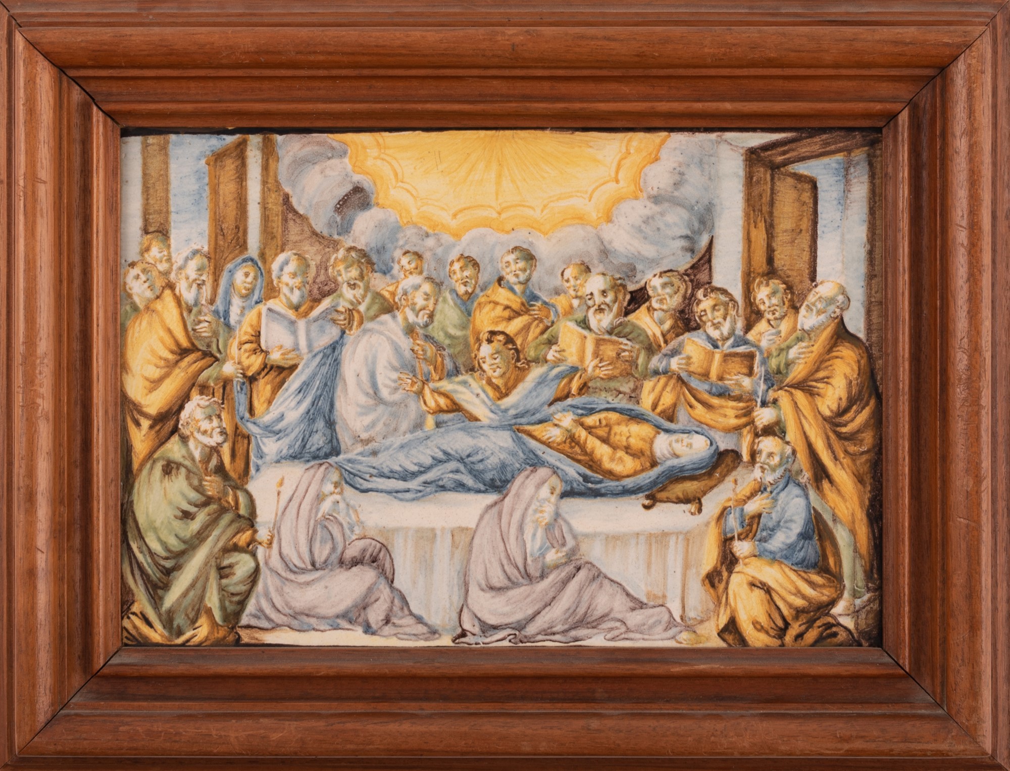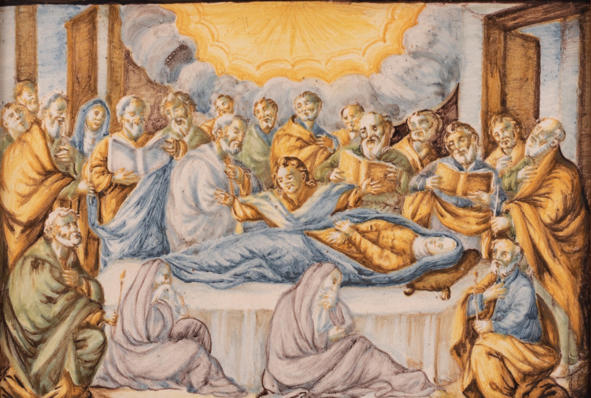 Mattonella maiolicata raffigurante l'episodio Evangelico della Dormitio Virgini