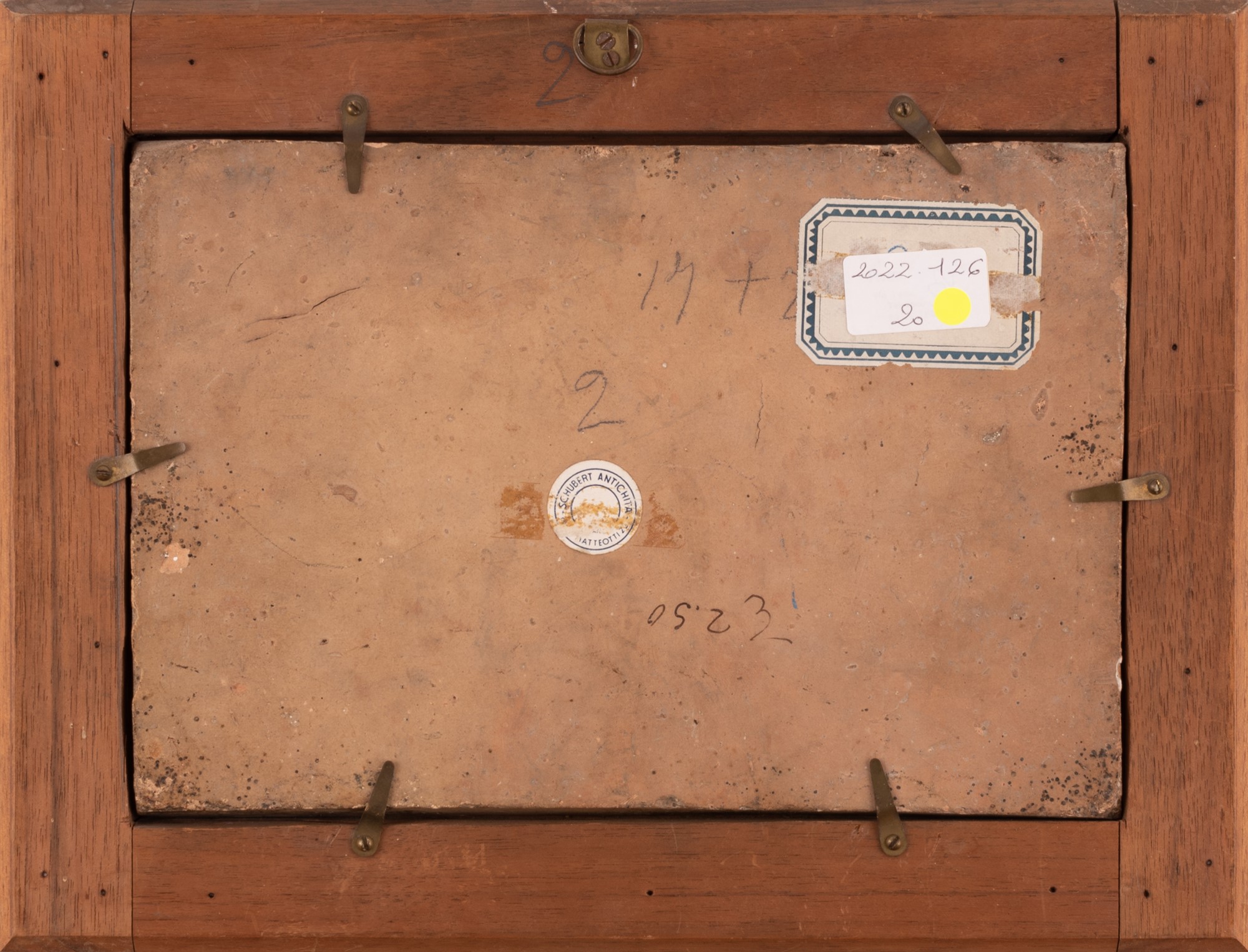 Maestro castellano attivo intorno alla metà del XVIII secolo ( - ) Mattonella maiolicata raffigurante l'episodio Evangelico della Dormitio Virgini cm 17,5x26,3