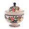 Zuppiera in maiolica decorata in policromia con motivi floreali e bordatura in blu