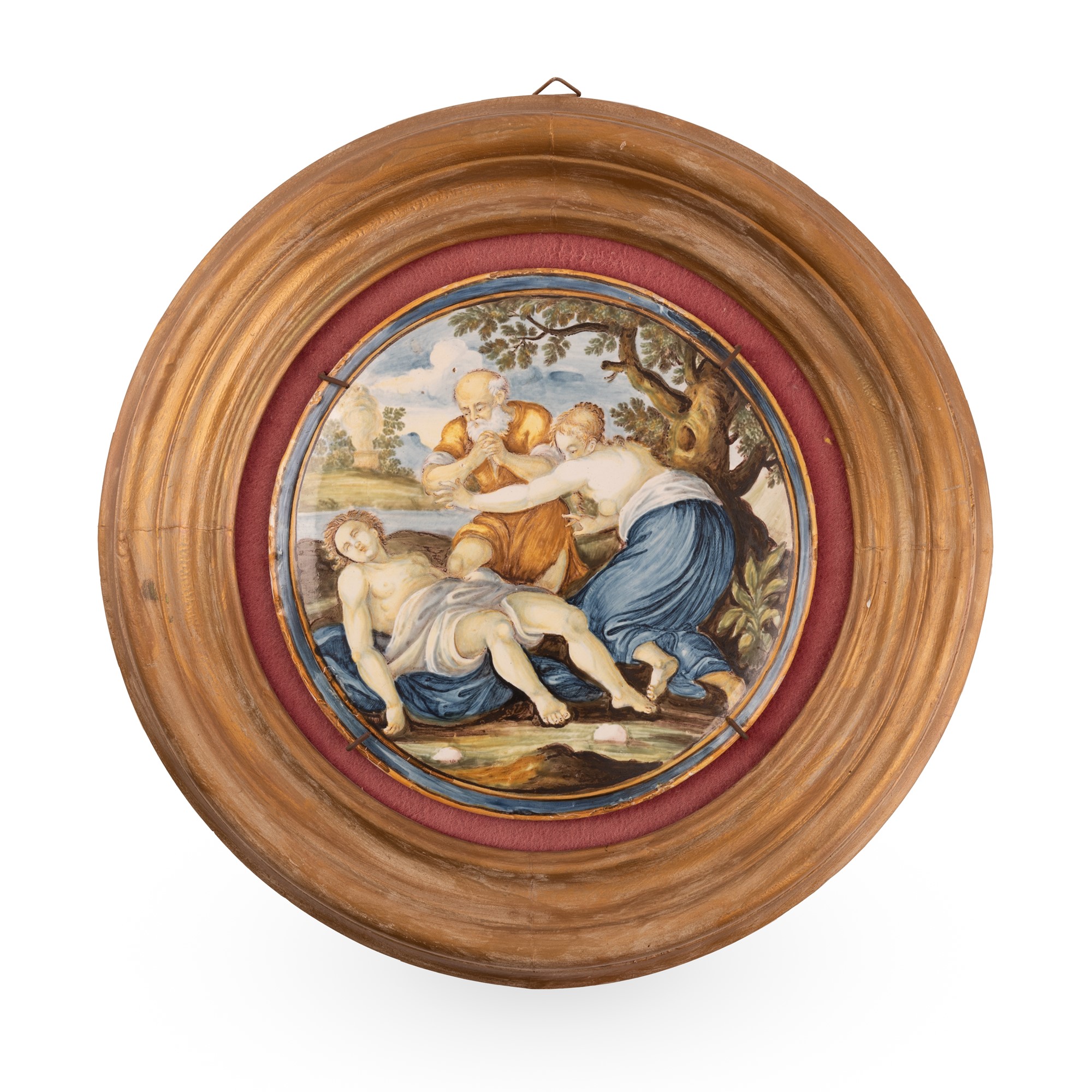 Liborio Grue (Castelli, 1702 - Teramo, 1779/80) Tondo in maiolica decorato con una scena mitologica. Ø 21,5