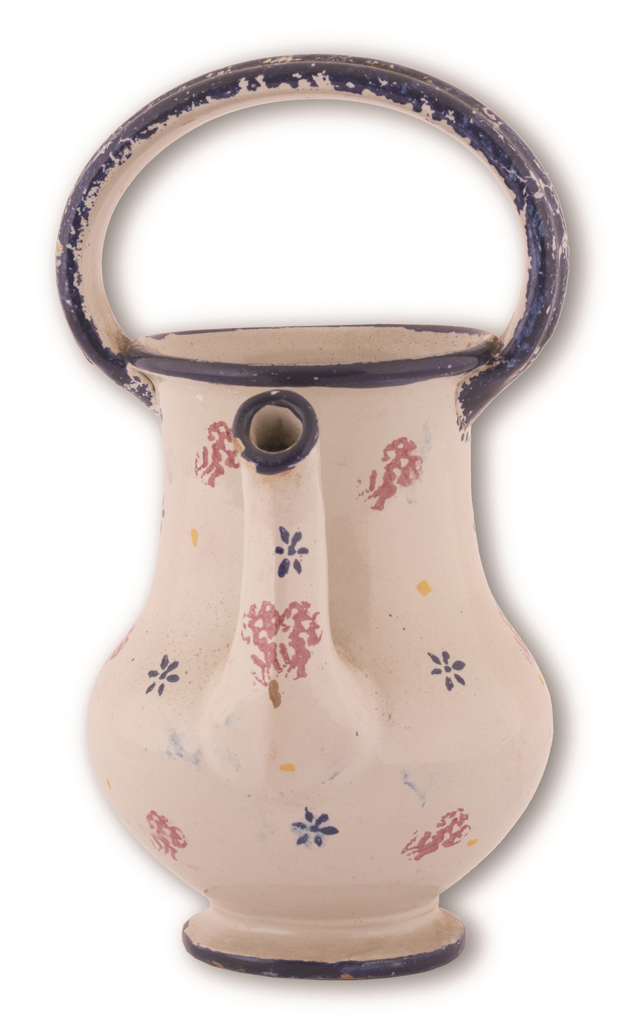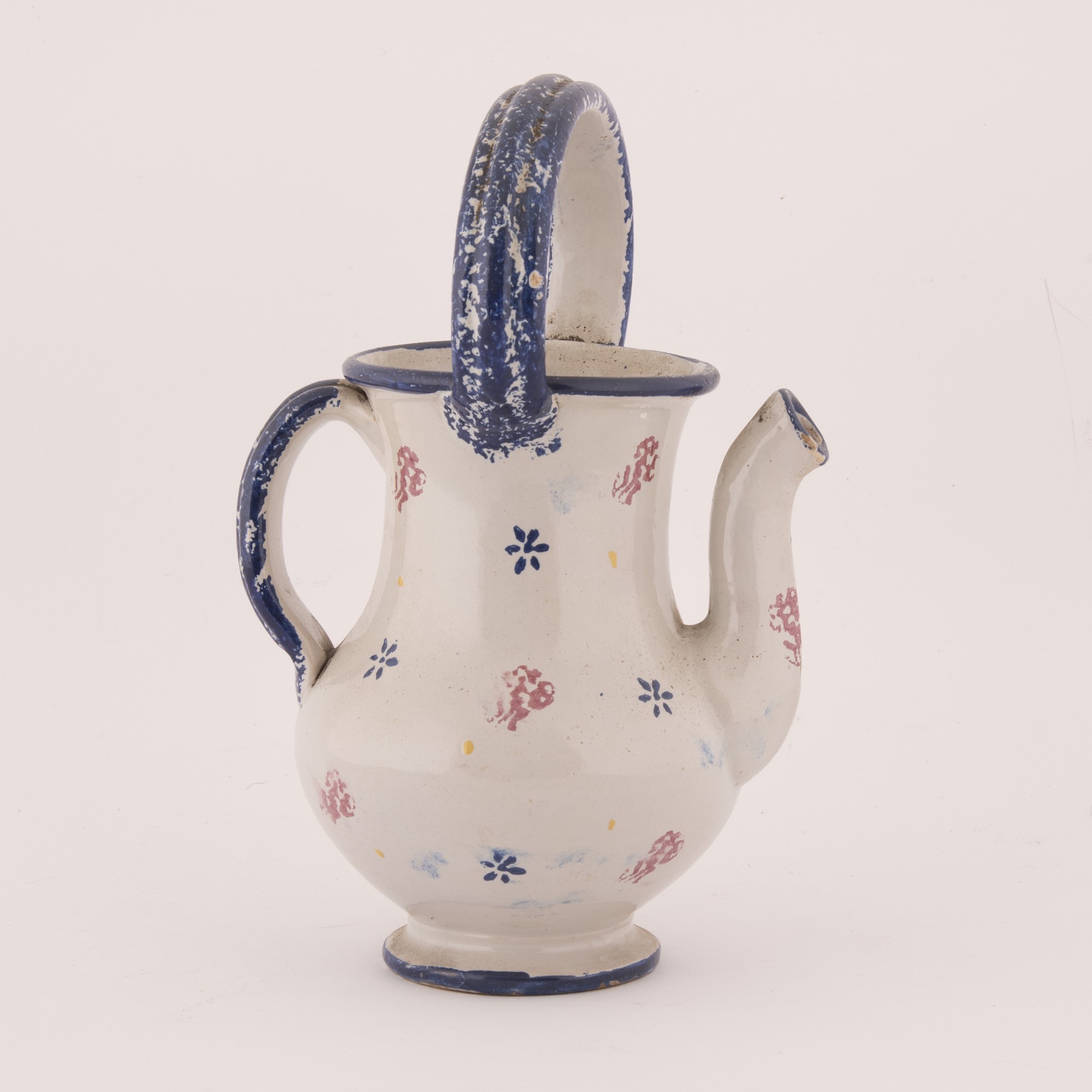 Manifattura abruzzese attiva tra il tardo XIX ed i primi del XX secolo. ( - ) Brocchetta decorata con marezzature e fiori stilizzati sparsi cm 26,5x15
