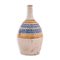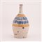 Bottiglia in maiolica a fondo bianco. Corpo ovoidale decorato con fasce gialle e motivo vegetale in blu realizzato in spugnetta
