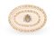 Vassoio in maiolica a gran fuoco, corpo ovale, tesa baccellata, decorato nello stile compendiario con stemma vescovile entro doppia ghirlanda stilizzata.