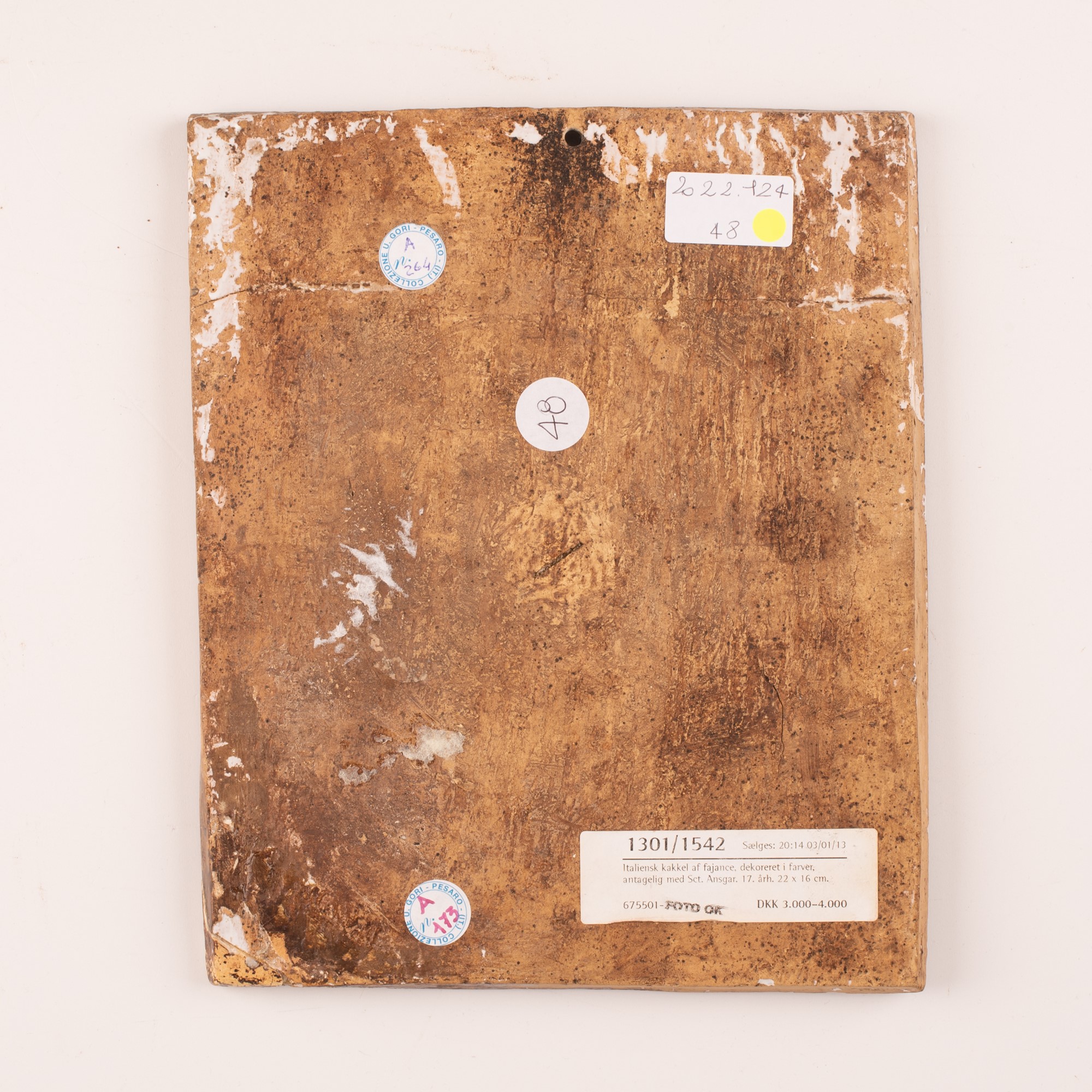 Placca in maiolica decorata con Santa Martire. cm 26,5x22